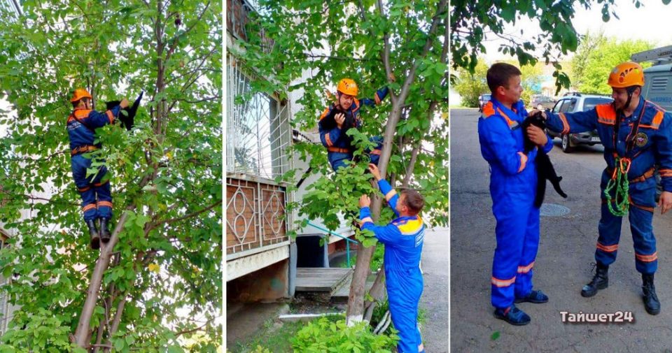 Тайшетские спасатели сняли просидевшего три дня на дереве кота