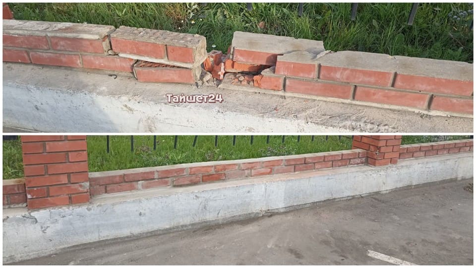 В конце июля в Тайшете неизвестные водители ночью задели ограждение городского парка, повредив несколько кирпичей.