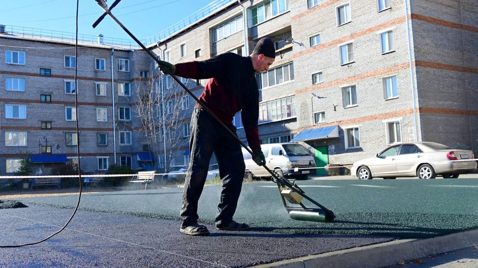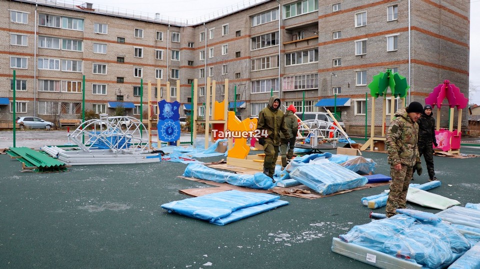 Во дворе домов №3 и 5 по улице Зои Космодемьянской в Тайшете кипит работа. Здесь устанавливают…