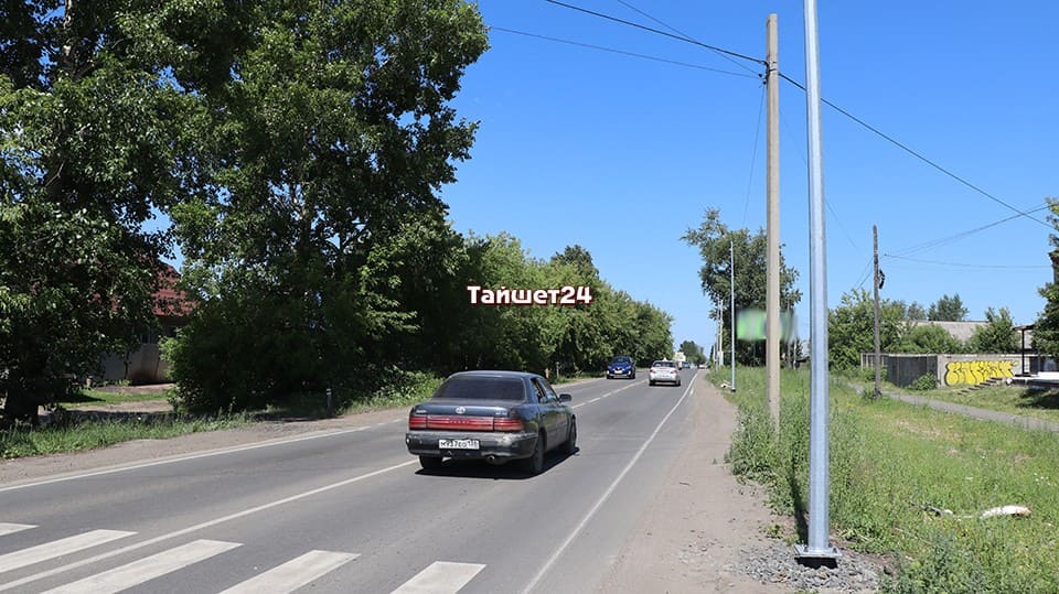 На улице Кирова в Тайшете установили новые столбы для уличного освещения