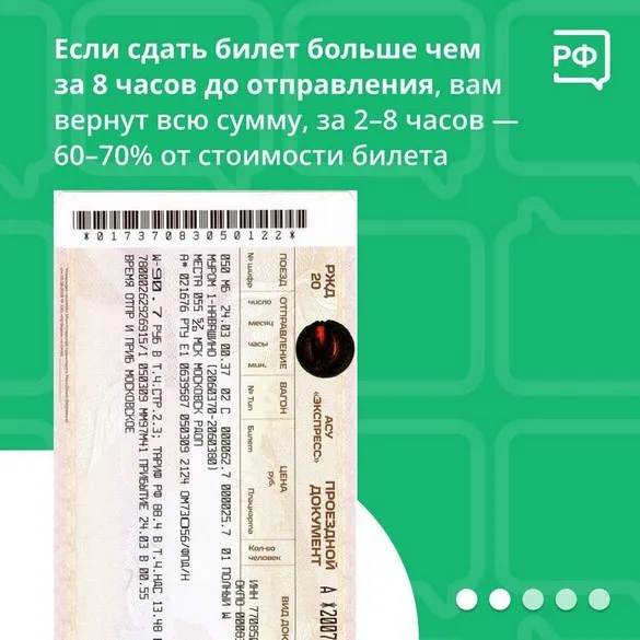 Поменялись планы или просто опоздали на поезд? До поездки получится вернуть всю стоимость билета, а после отправления — только часть.