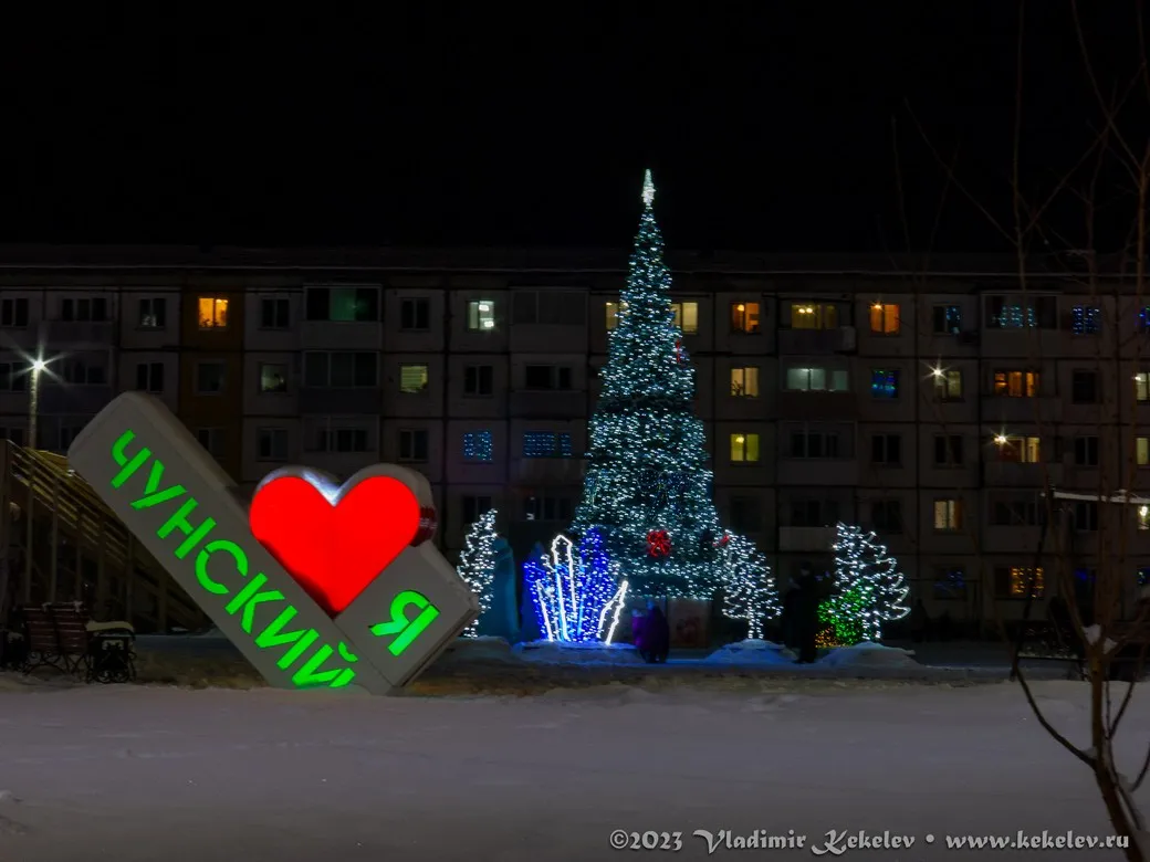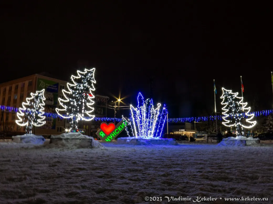 Скромный посёлок Чунский с населением в 13 с хвостиком тысяч человек к Новому году подготовился достойно. Да, населённый пункт не сверкает праздничной иллюминацией в каждом своём уголке, но центральную площадь украсили старательно и с душой.