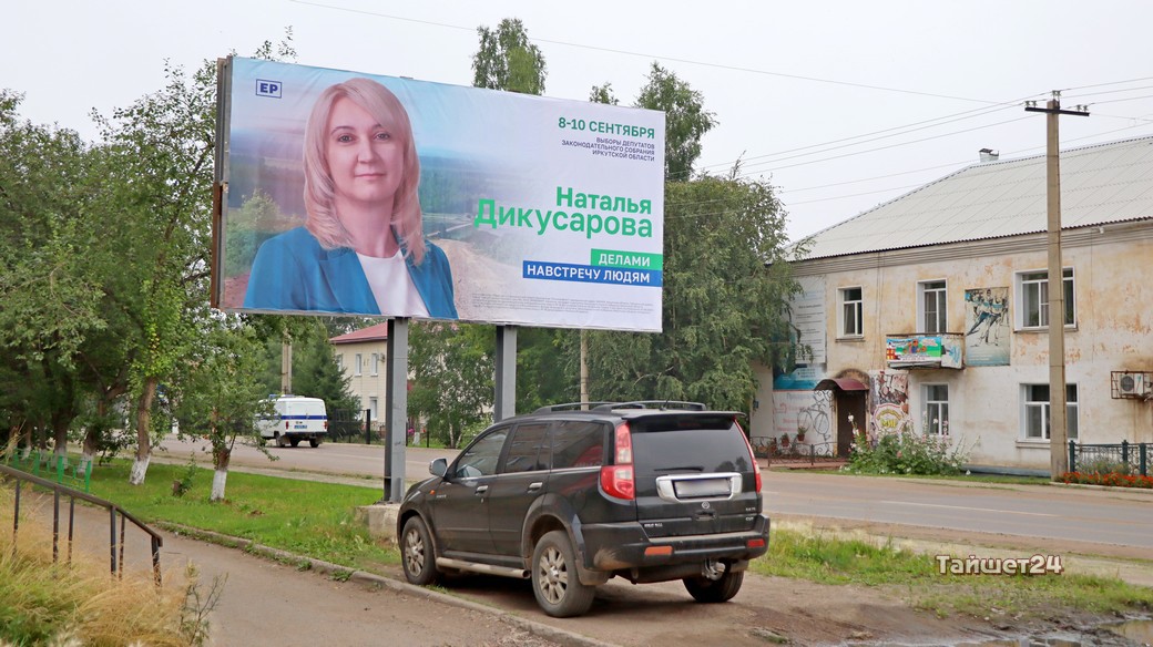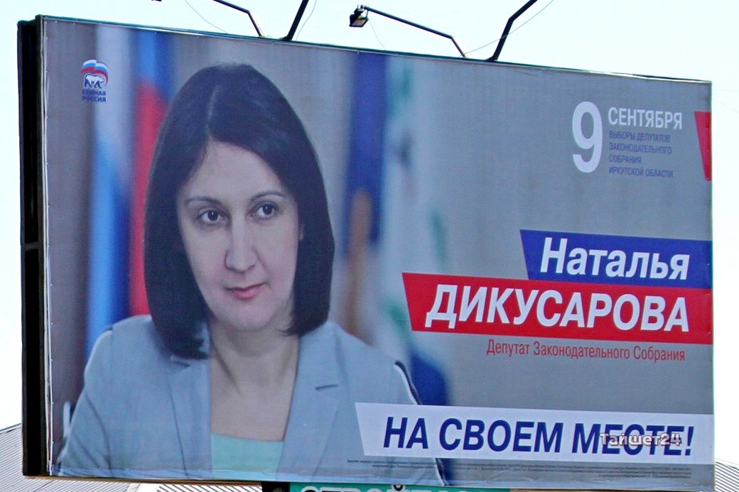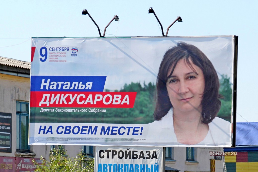 Действующий депутат Наталья Дикусарова, которая уже в четвёртый раз заходит в Законодательное Собрание Иркутской области, всё-таки решила перед выборами напомнить о себе жителям Тайшета. На рекламных конструкциях в разных частях города появились её 18-метровые агитационные баннеры.