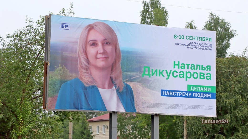 Действующий депутат Наталья Дикусарова, которая уже в четвёртый раз заходит в Законодательное Собрание Иркутской области, всё-таки решила перед выборами напомнить о себе жителям Тайшета. На рекламных конструкциях в разных частях города появились её 18-метровые агитационные баннеры.