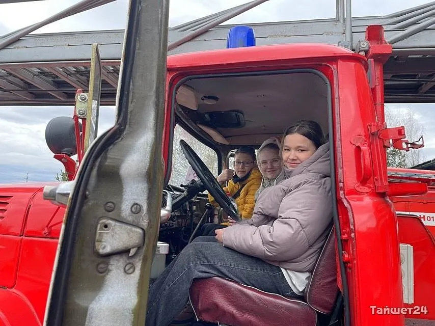 Мальчишкам и девчонкам разрешили посидеть в кабинах пожарных машин.