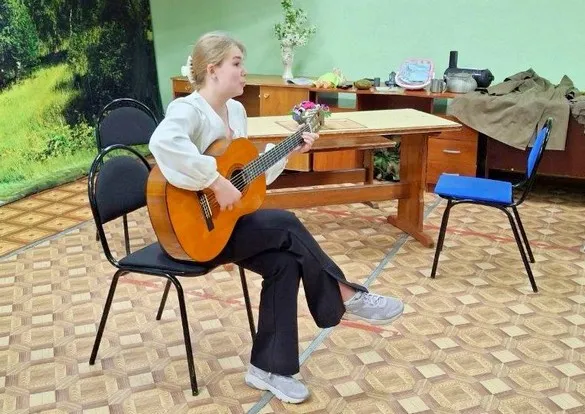 Ребята разделились на две команды. За каждый правильный ответ в общую копилку полагалась карамелька. Надо признаться, не все вопросы получили правильные ответы. Но на две карамельки одна из команд опередила соперников. Далее наша гостья и талантливая девушка Ульяна Хлебникова исполнила две песни, аккомпанируя на гитаре.