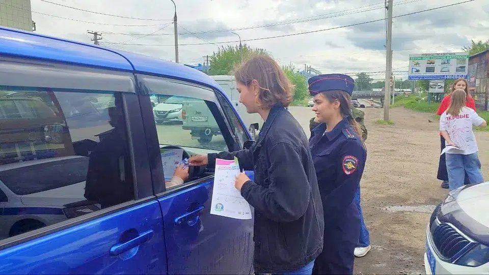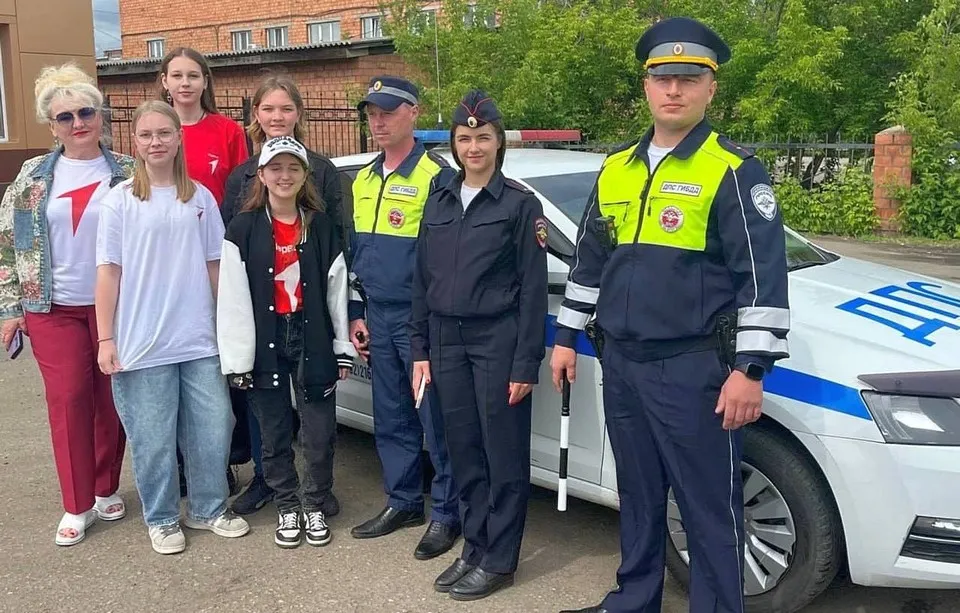 Всем участникам акции полицейские и Первые подарили ленточки с триколором, открытки и памятки по правилам дорожного движения.