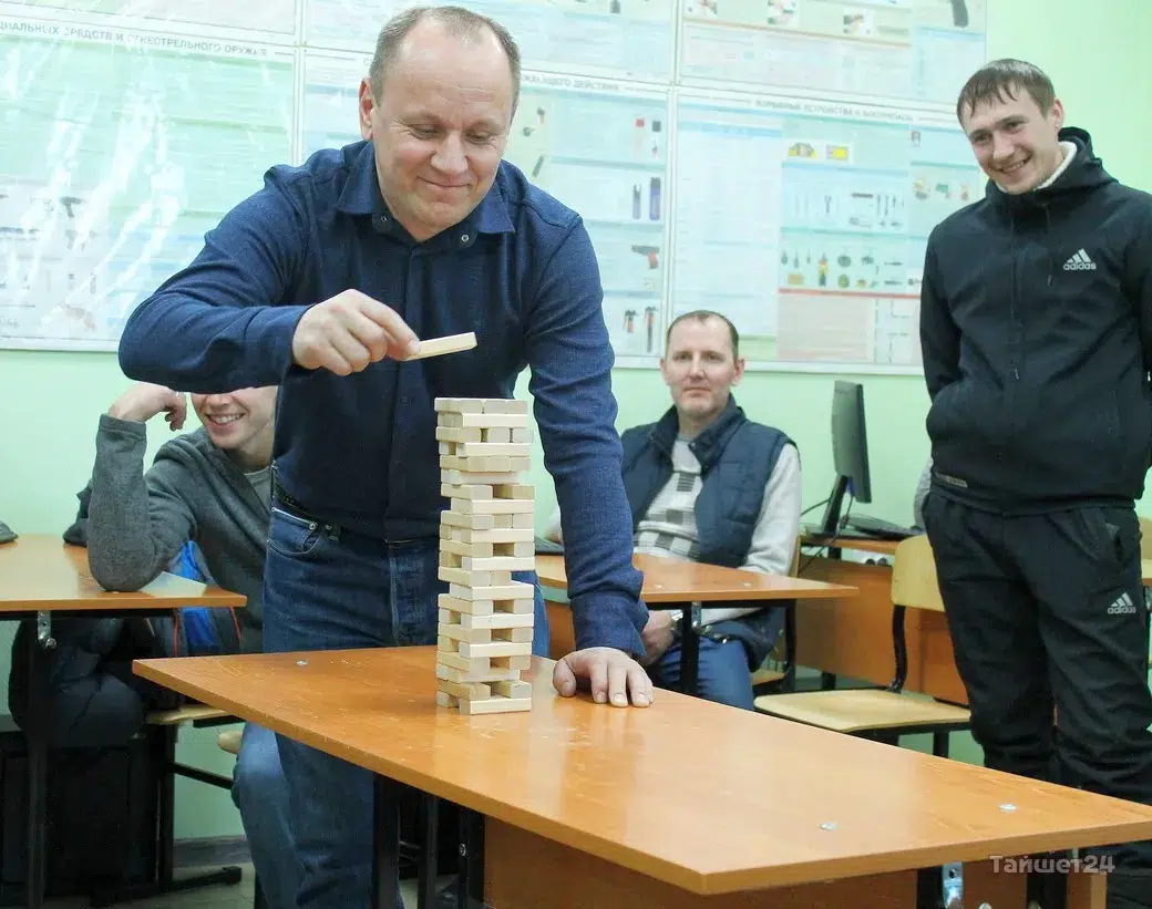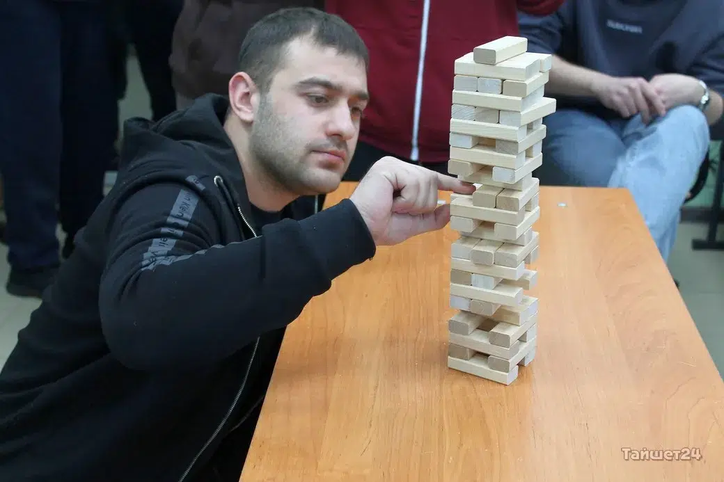 Для разнообразия между стрельбами командам предложили сыграть в популярную игру «Башня». Это добавило в соревнования азарт, мастерство и создало кучу эмоций у всех мужчин.