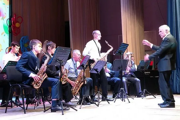 На сцене выступил Народный духовой оркестр под управлением талантливого музыканта, профессионала своего дела Александра Желнина. В составе коллектива опытные исполнители и молодые, подающие надежды музыканты. Все они безгранично любят музыку и преданы творчеству.
