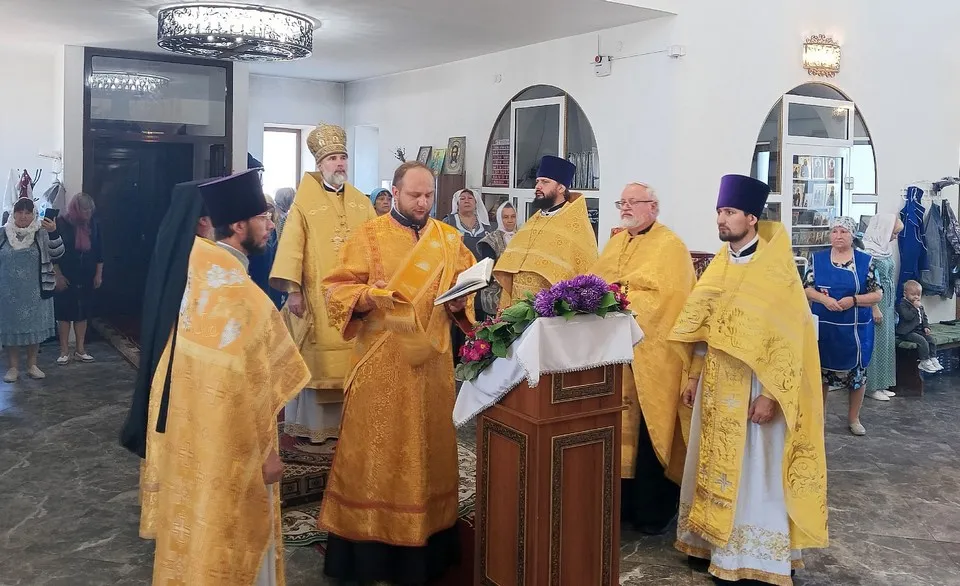 После литургии епископ Алексий в сослужении духовенства совершил Благодарственный молебен Господу Богу за дарованные жителям города и района блага.