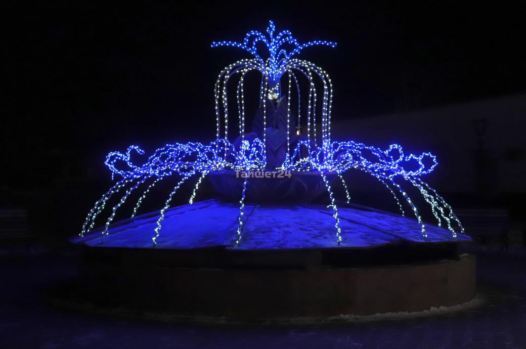 В Тайшете фонтаны у городского парка и на Стройучастке накануне засияли новогодне-торжественными красками.