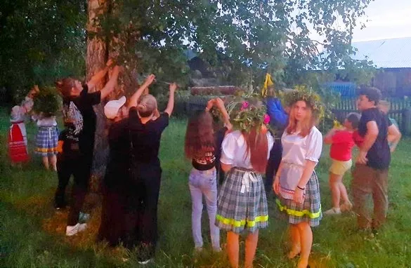 Затем был проведён ещё один обряд – берёзку славить, величать да украшать. Все желающие завязывали ленточки на берёзке, при этом загадывая желание, которое, согласно легенде, непременно должно исполниться.