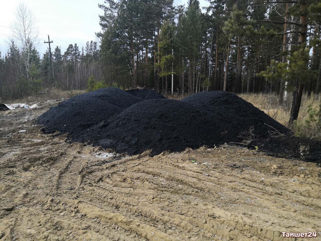 Не меньше 20 тонн асфальта, который где-то оказался лишним, утилизировали в Тайшетском районе, возле кладбища села Бирюса.