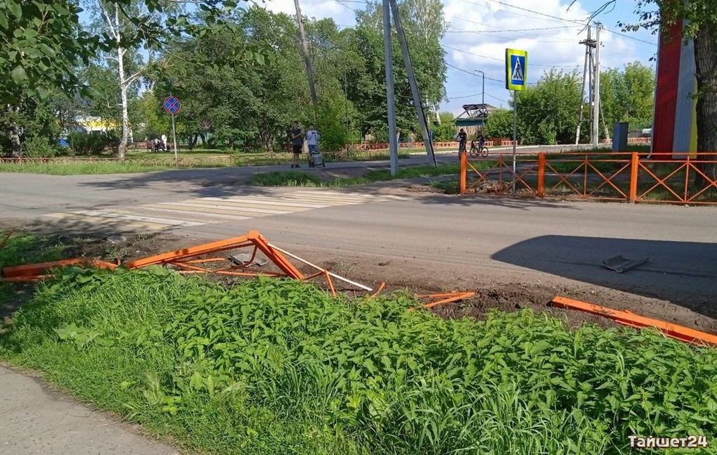 Водитель автобуса №1 сегодня, вероятно, не справился с управлением и въехал в новые ограждения на улице Чапаева в Тайшете.