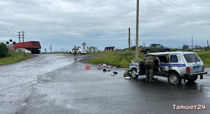ДТП произошло сегодня, 12 июля, на улице Сибирской в Тайшете. Столкнулись грузовик и полицейский автомобиль.