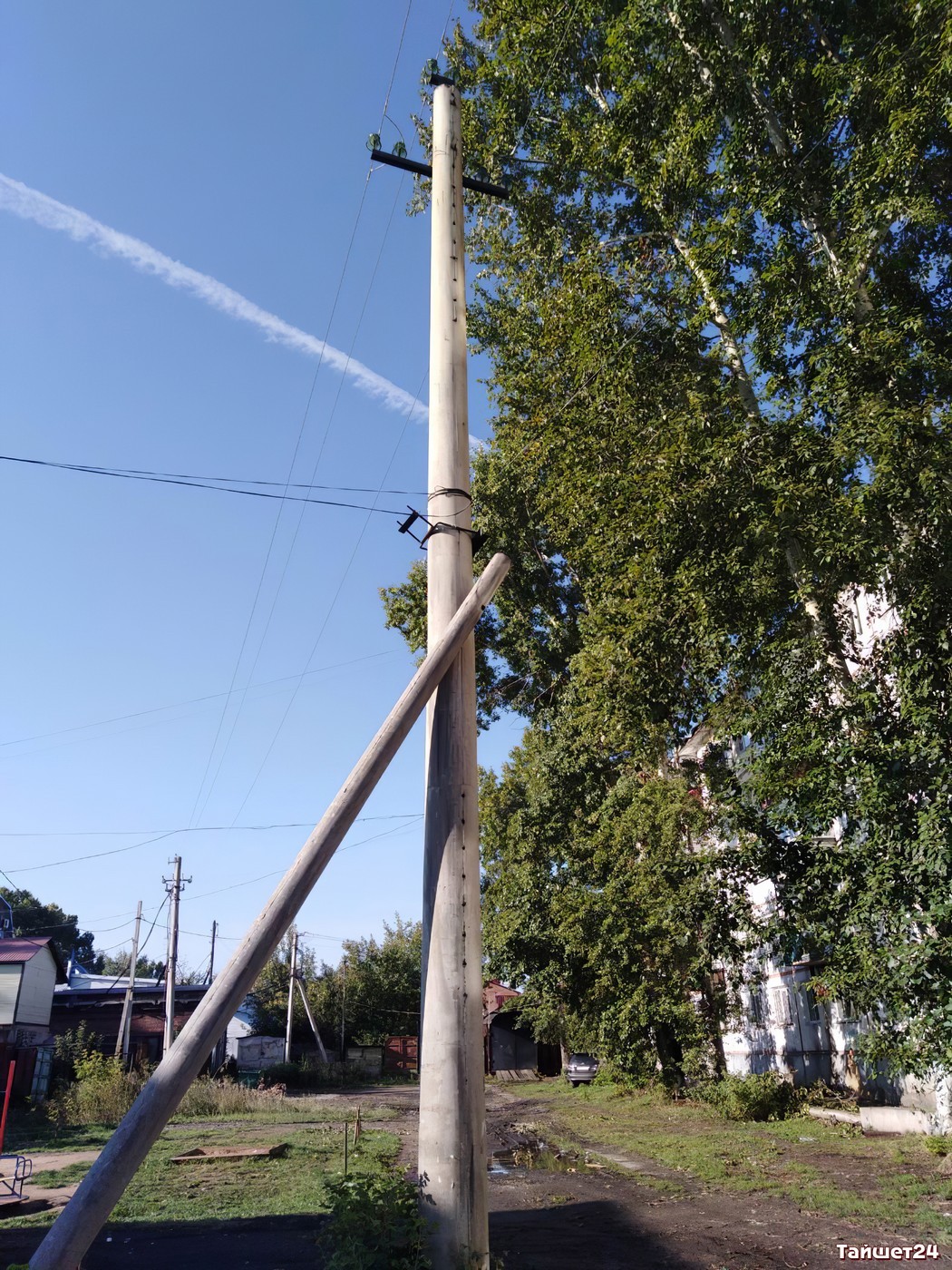 Во дворе дома №5 по улице Горького в Тайшете уже не первый месяц в рискованном для окружающей действительности положении висит бетонный столб.