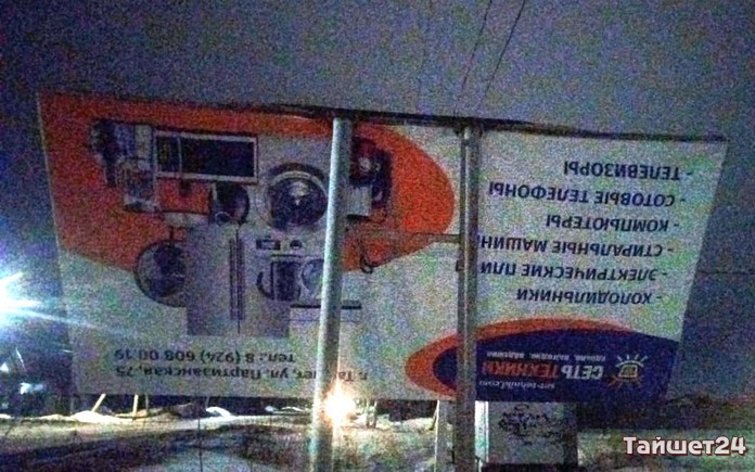 После сильного ветра, который бушевал в Тайшете 1 марта, рекламная конструкция угрожающе нависла над головами пешеходов на улице Партизанской. Рядом с билбордом пролегает дорожка, которая ведёт к продуктовому магазину и пользуется популярностью у людей.