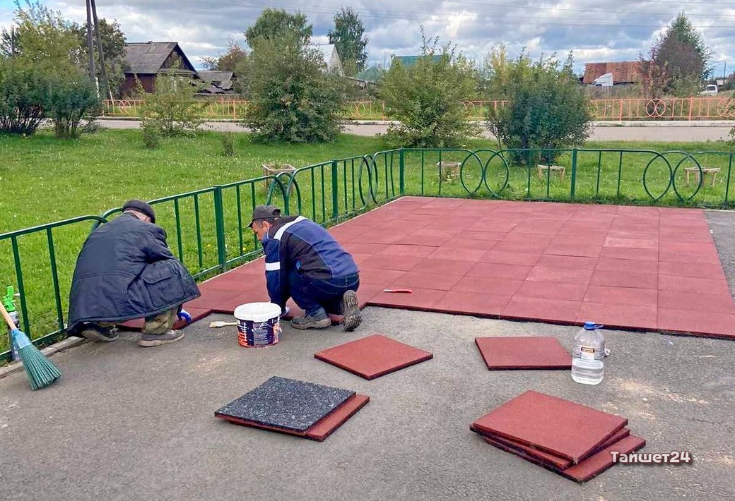 С опозданием буквально на несколько лет администрация Тайшета решила позаботиться о ребятишках, которые проводят свой досуг в детском городке на площади Юбилейной, и взялась за установку напольного покрытия на голый асфальт.
