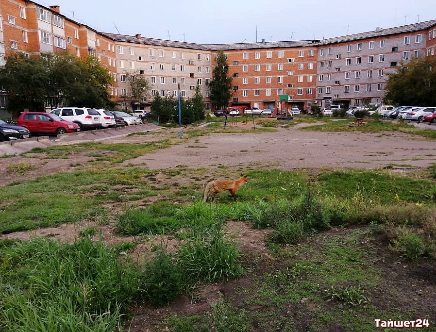 Сегодня утром жители Тайшета заприметили в микрорайоне Новый лису. Что именно заставило дикое животное выйти к людям, остаётся только догадываться. Однако, судя по её очень худощавому телосложению, всё банально – зверю просто нечем питаться в лесу.
