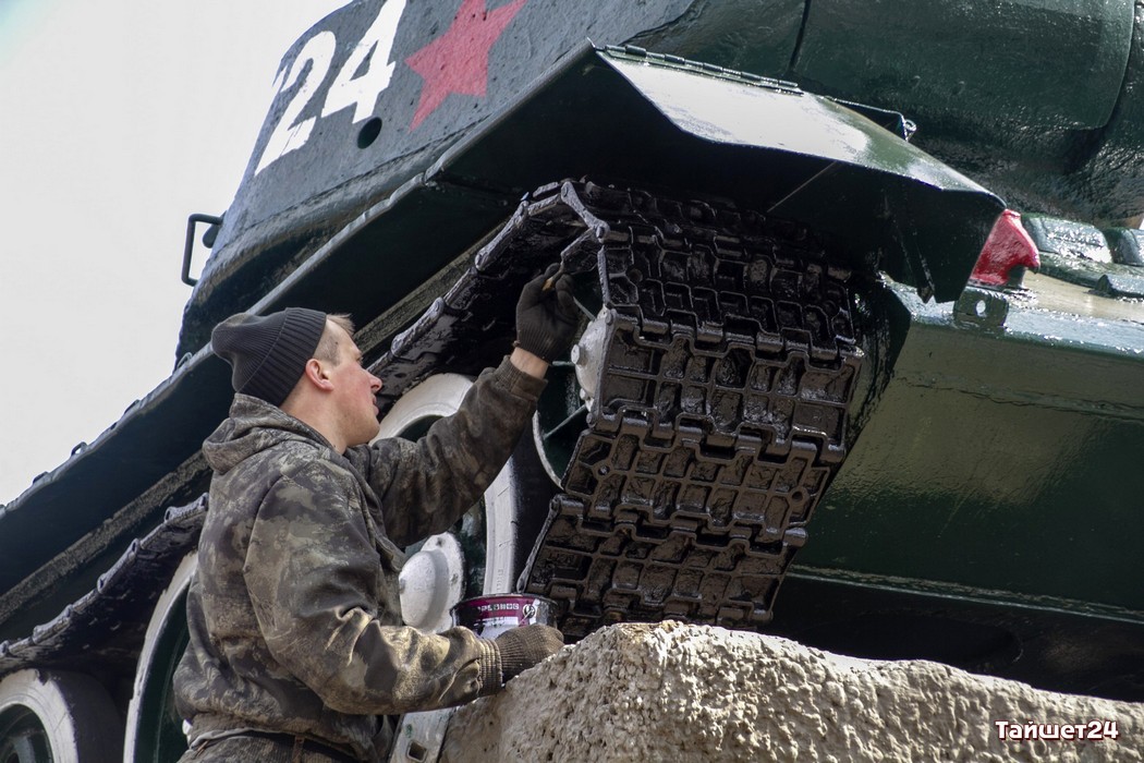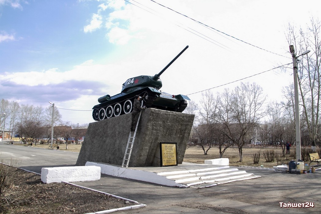 В Тайшете накануне 9 Мая привели в порядок танк на площади «Юбилейной». Памятник воинам, погибшим в годы Великой Отечественной войны, был установлен в 70-80-х годах прошлого столетия.