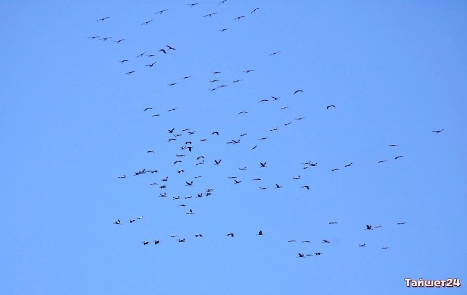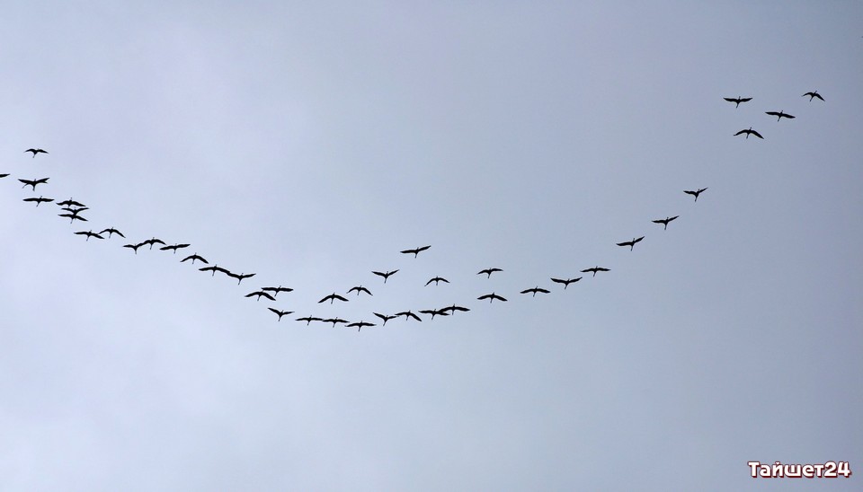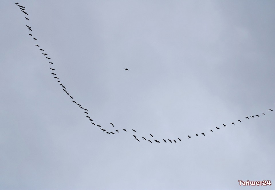Жители Тайшета два дня назад наблюдали, как журавли отправились зимовать на юг.