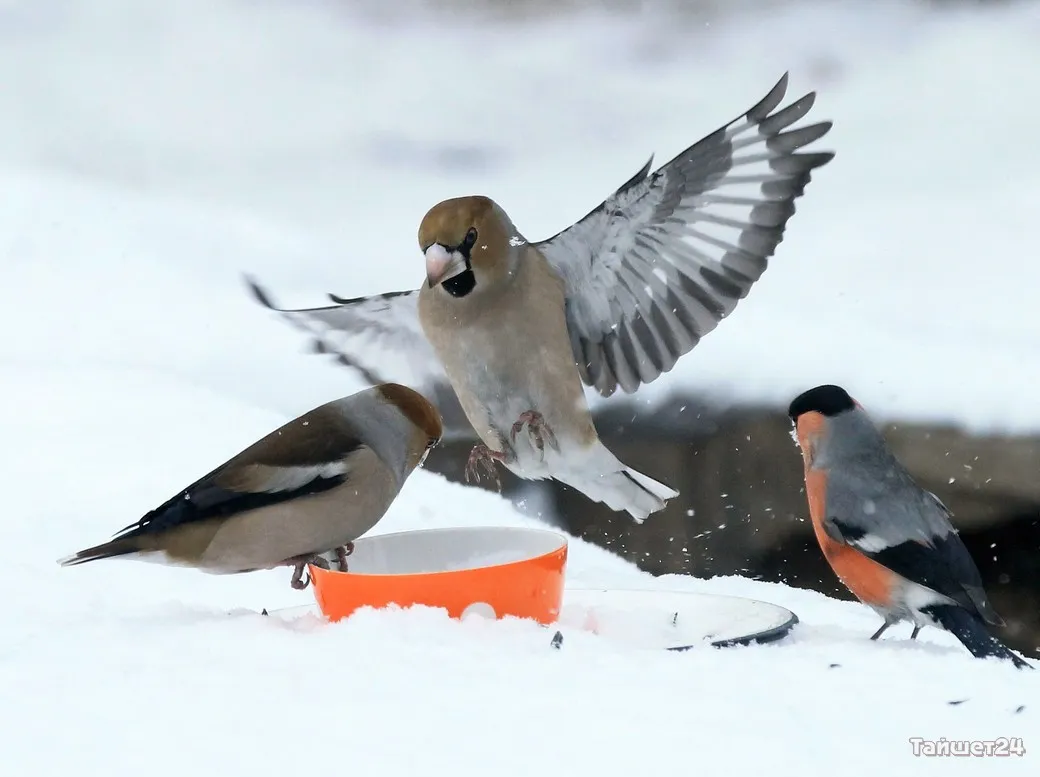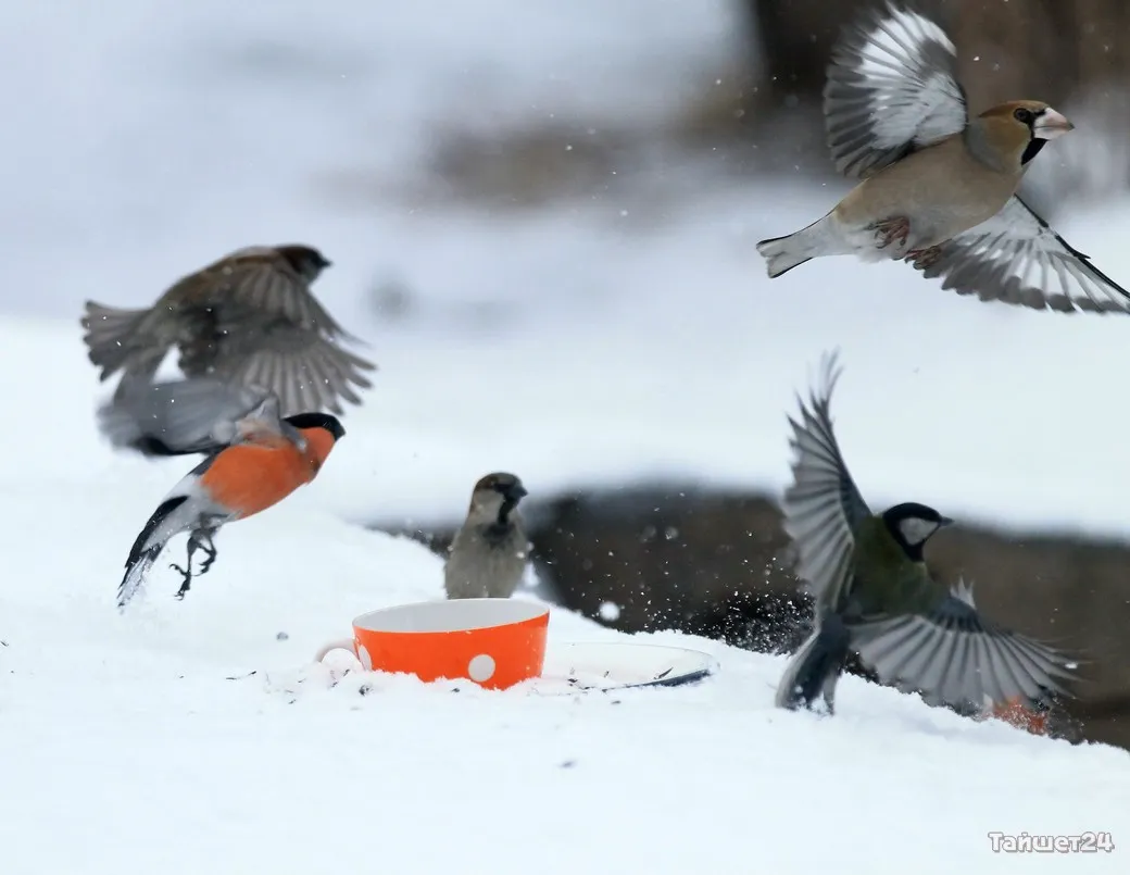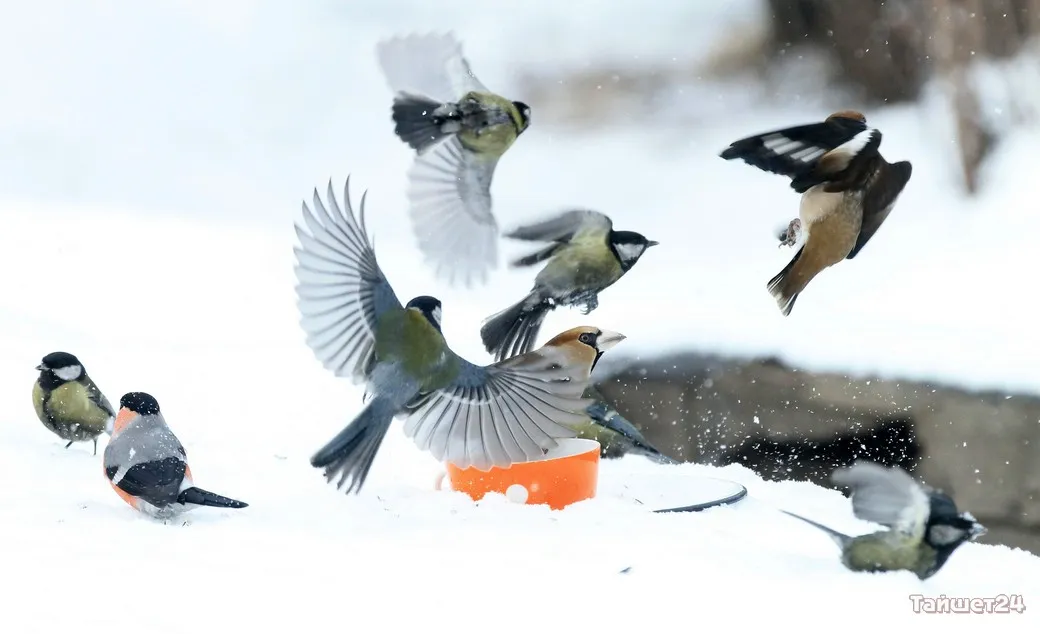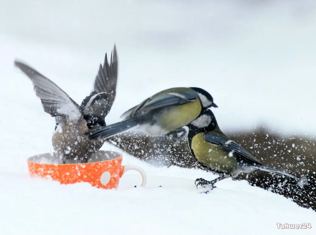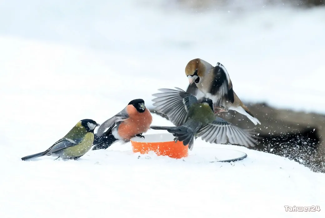 Жительница Тайшета Людмила Леунина всю зиму подкармливает птиц. И в объективе фотоаппарата наблюдает за их «застольями», которые ярко демонстрируют, как птицы умеют бороться за крошку хлеба или семечку.