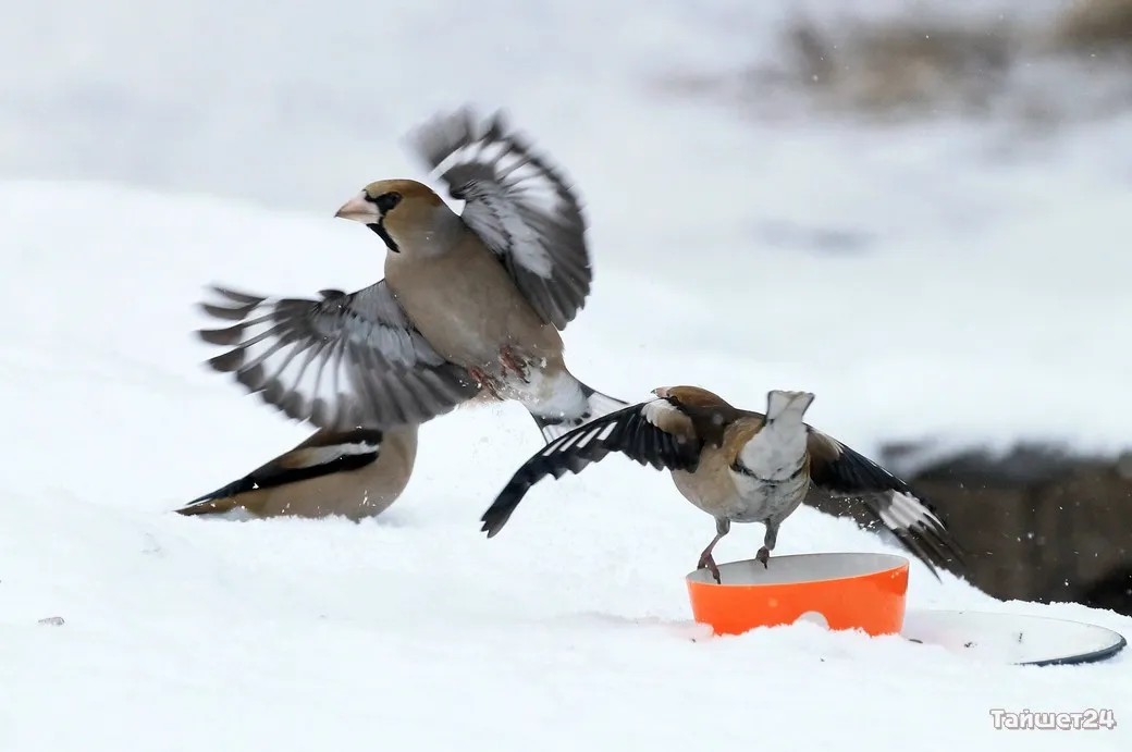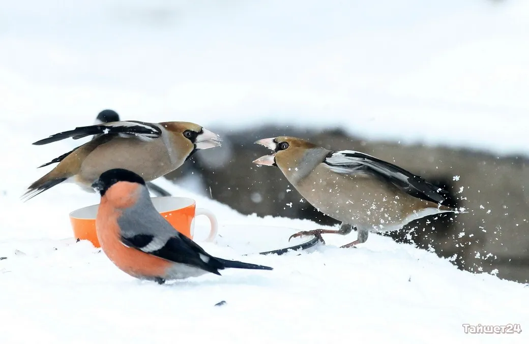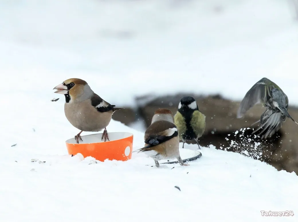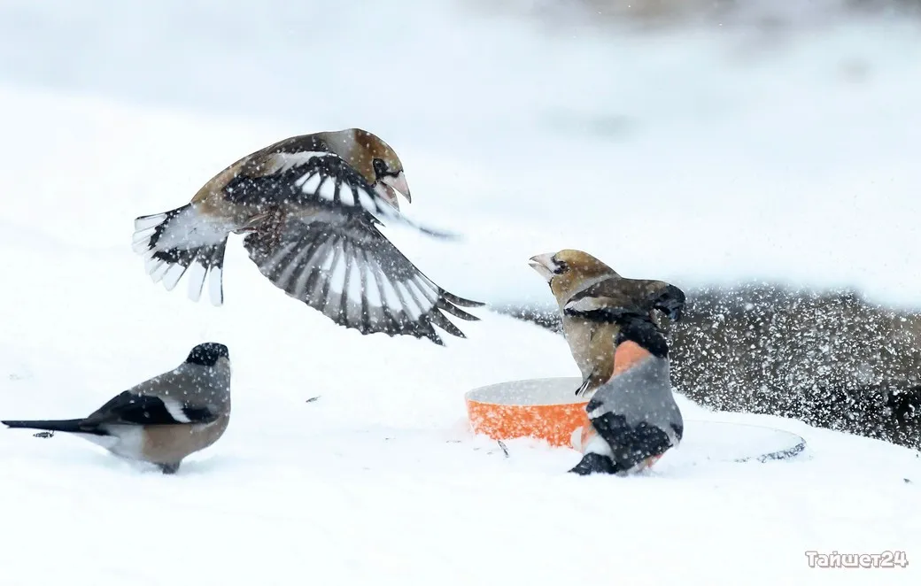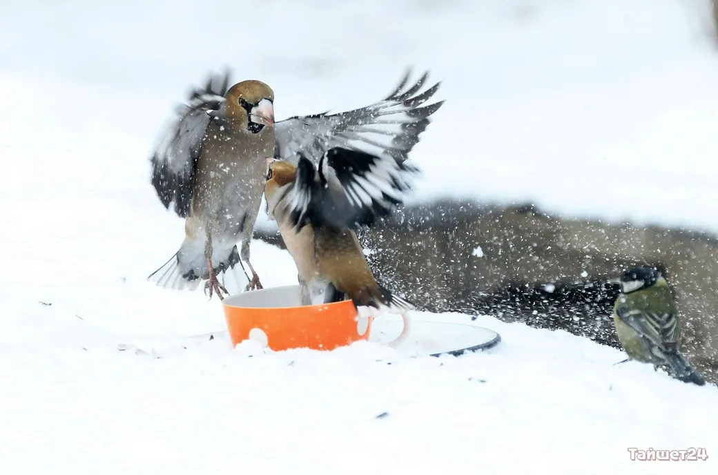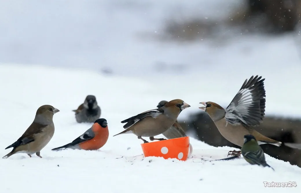 Жительница Тайшета Людмила Леунина всю зиму подкармливает птиц. И в объективе фотоаппарата наблюдает за их «застольями», которые ярко демонстрируют, как птицы умеют бороться за крошку хлеба или семечку.