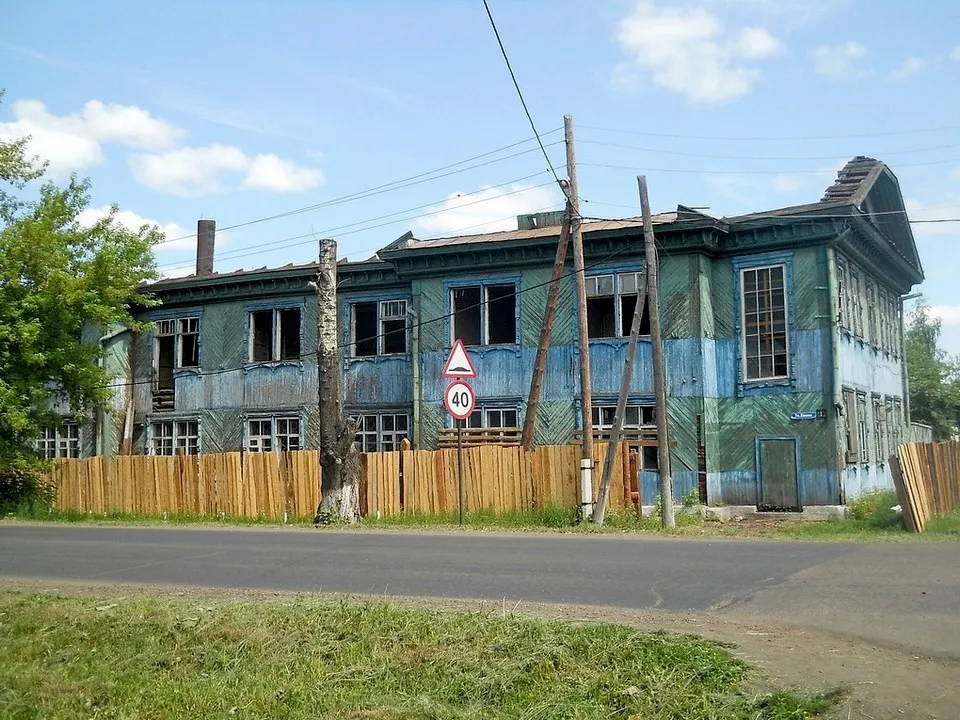 На этом снимке здание в ещё более или менее приличном состоянии. Но в последние годы оно сильно «поехало». Теперь его и вовсе нет.