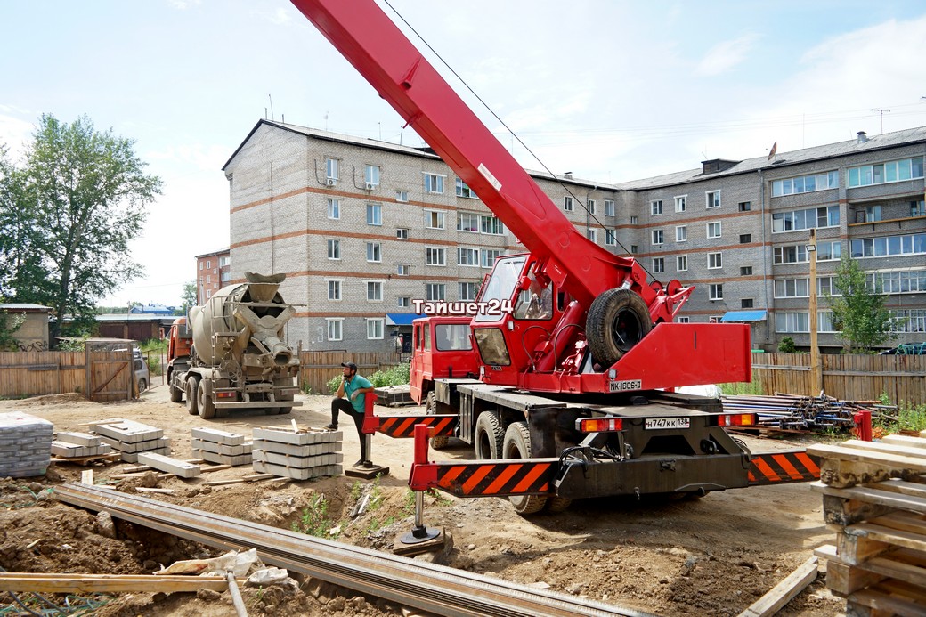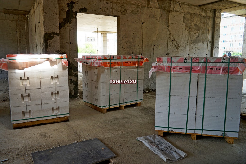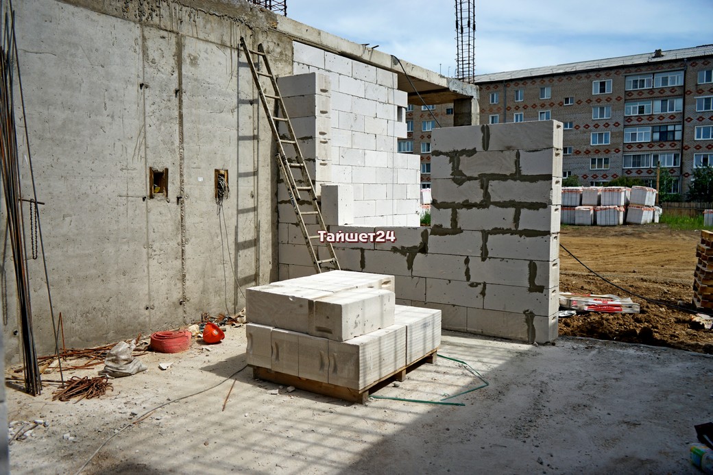 В Тайшете на ул. Зои Космодемьянской продолжается возведение детского сада. Строители приступили к возведению второго этажа здания.