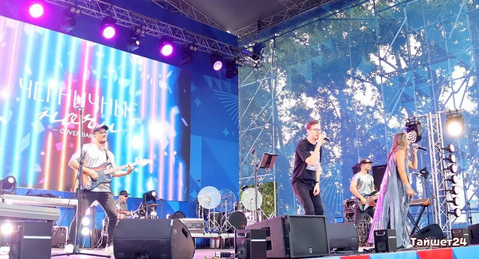 На сцене для горожан выступили тайшетские солисты и хореографические коллективы, красноярская кавер-группа «Черничные ночи».