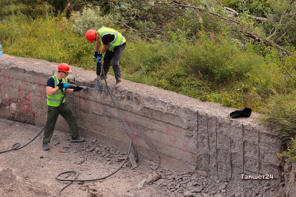 Работники подрядной организации «АнгарскСтройМеханизация» в настоящее время занимаются вырубкой деревьев и кустарников и параллельно демонтируют железобетонную подпорную стенку.