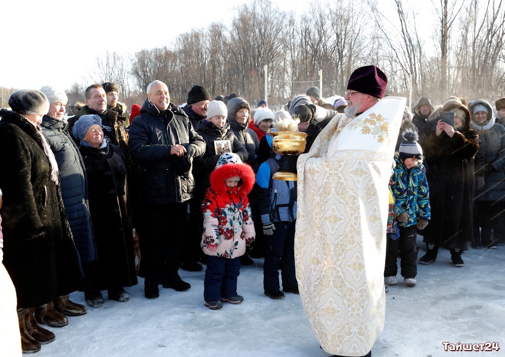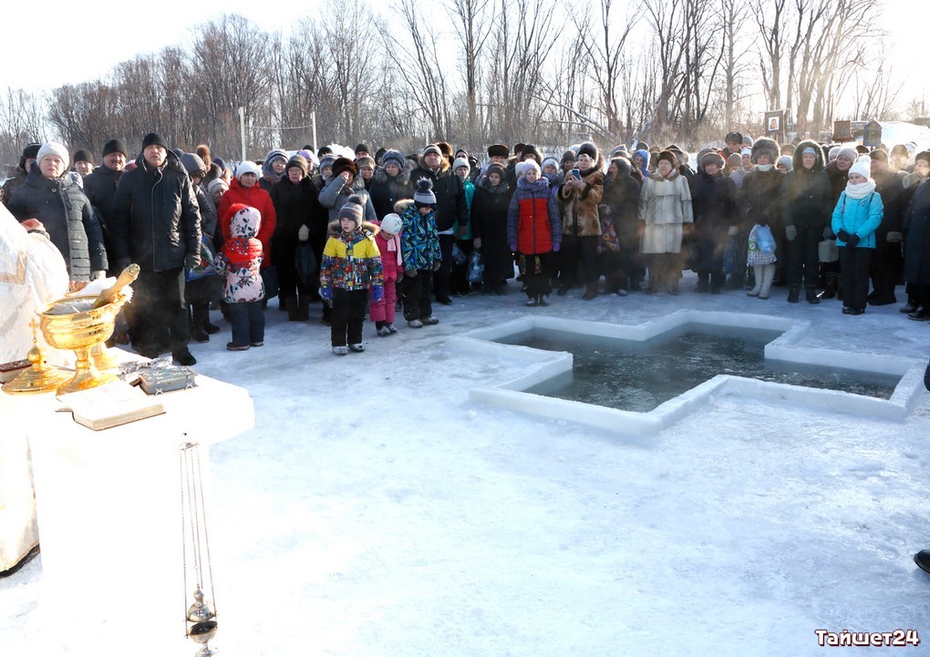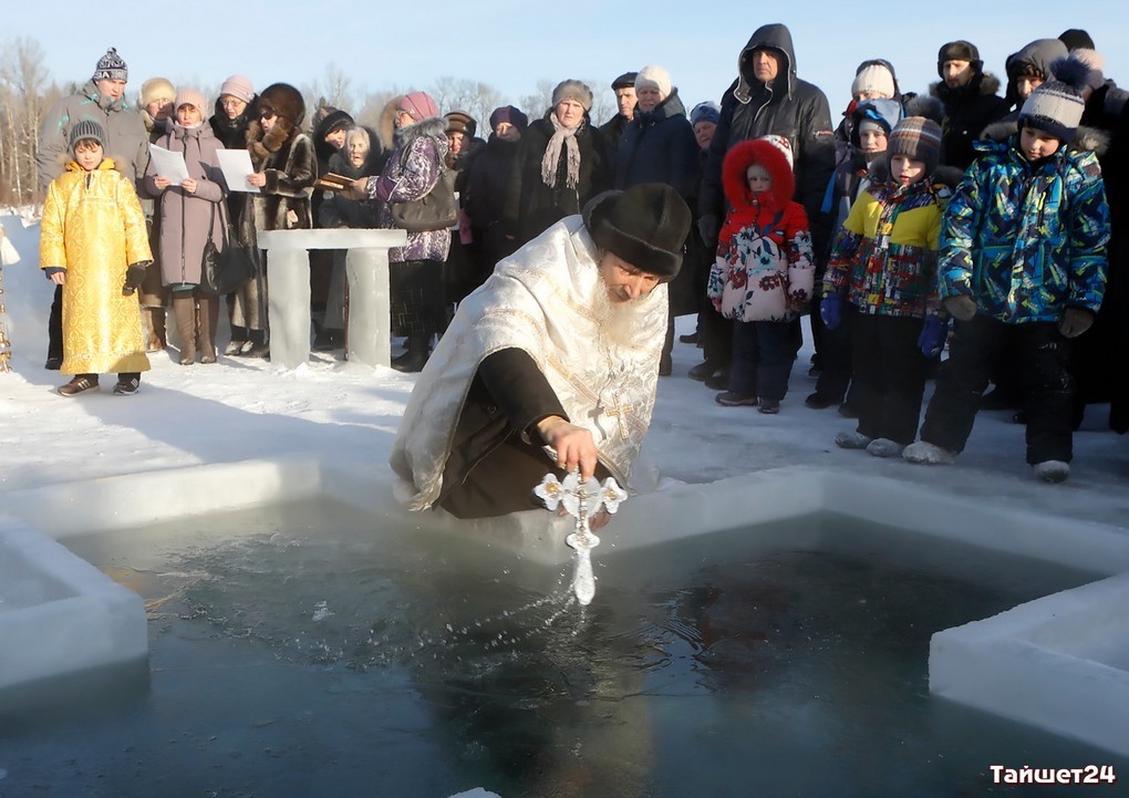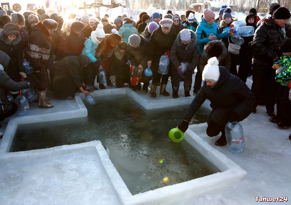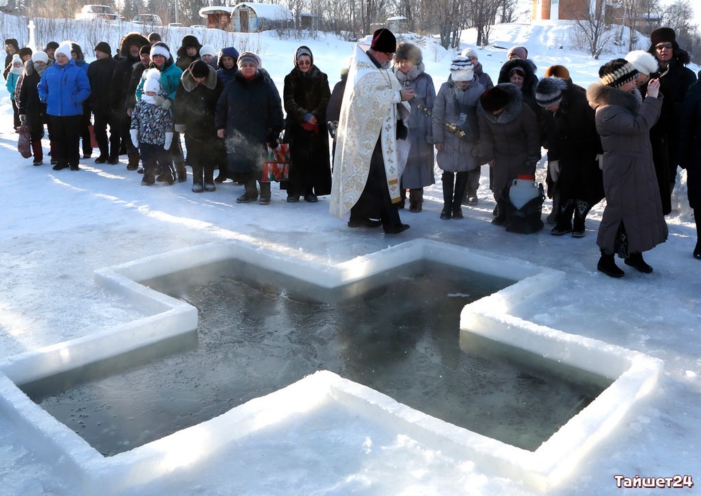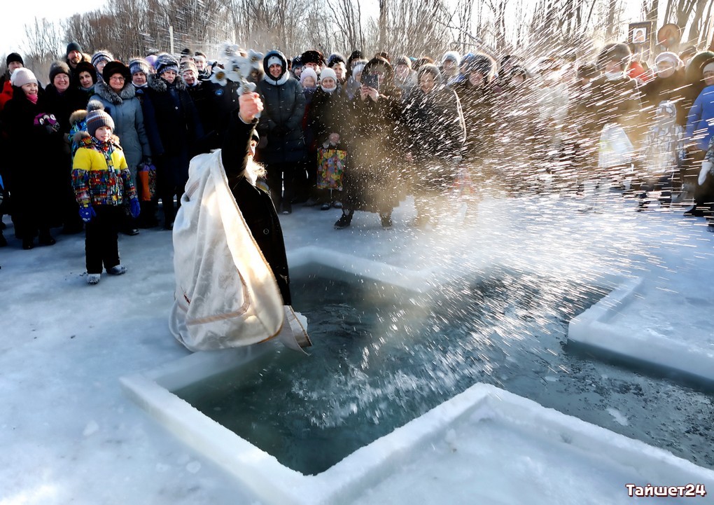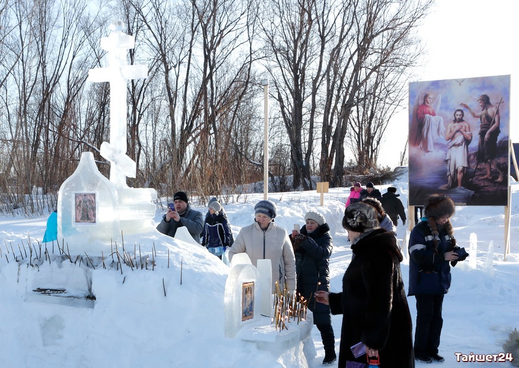 Ещё накануне по этому случаю на острове Шипичный в Бирюсинске начала функционировать купель. Сегодня многие верующие из близлежащих населённых пунктов смогли набрать святой воды и окунуться в прорубь.