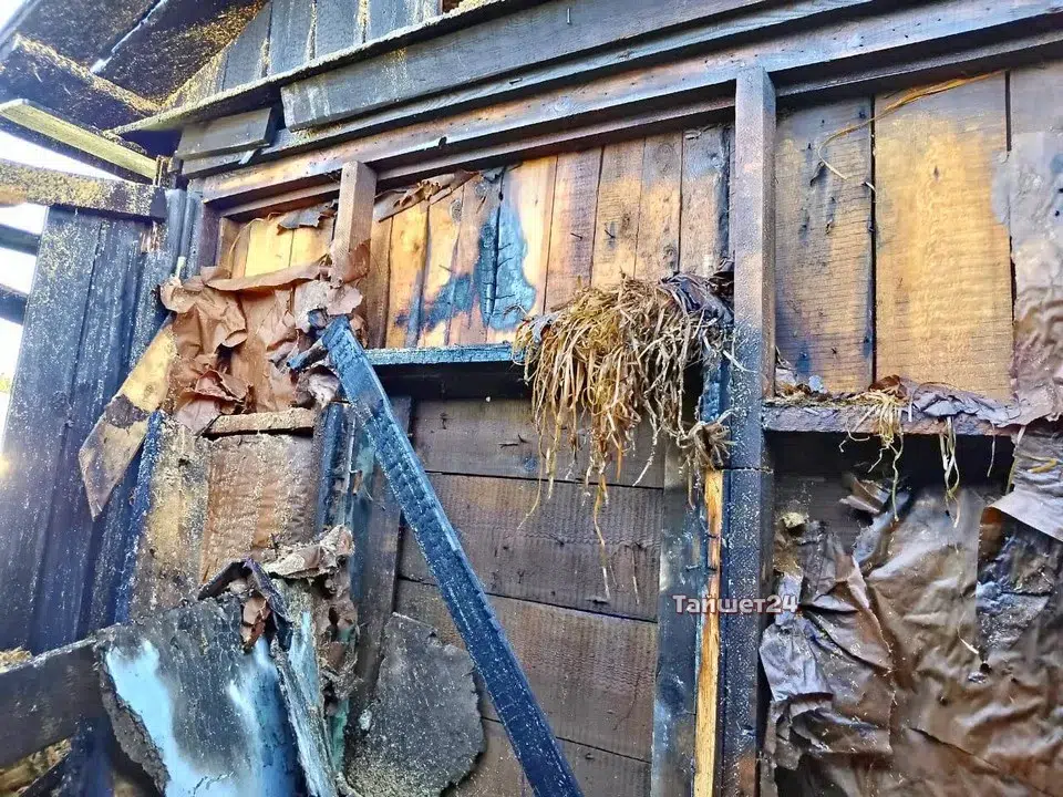 В результате пожара повреждены чердачное помещение дома, веранда, стайка, сарай, уничтожены огнем надворные постройки – дровяник и баня.