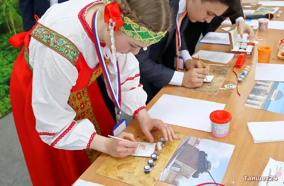 Мастер-класс. Здесь участники показали жюри и зрителям свои увлечения в свободное от учёбы время: рисование на воде, плетение ковриков и браслетов жизни для бойцов спецоперации, активные игры для учеников младших классов, изготовление кукол-оберегов, роспись сувениров к 100-летию Тайшетского района.
