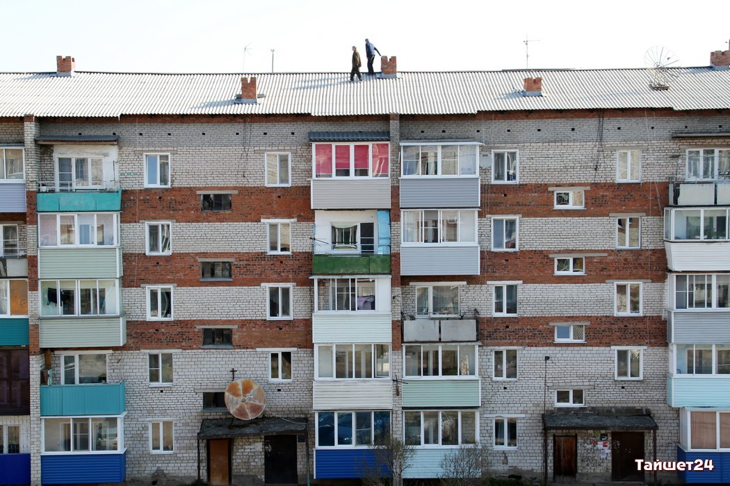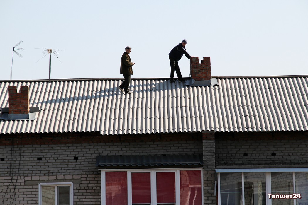 С раннего утра 15 мая по крыше дома №5 в микрорайоне «Новый» Тайшета начали своё бесстрашное шествие неизвестные граждане. По всей вероятности, они являются сотрудниками местной управляющей компании.