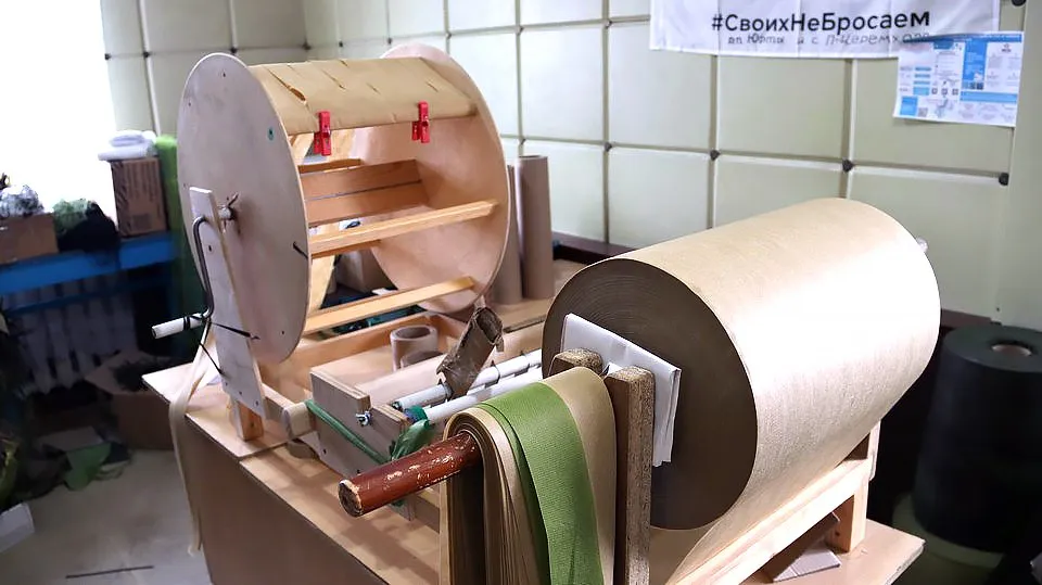 Сначала все нарезки мы делали, что называется, руками. С помощью ножниц. А это, как вы понимаете, очень долго и трудоёмко. Потом учитель технологии из школы №24 Николай Михайлович Пухилас по схеме соорудил нам замечательный агрегат, который в десятки раз ускорил процесс.