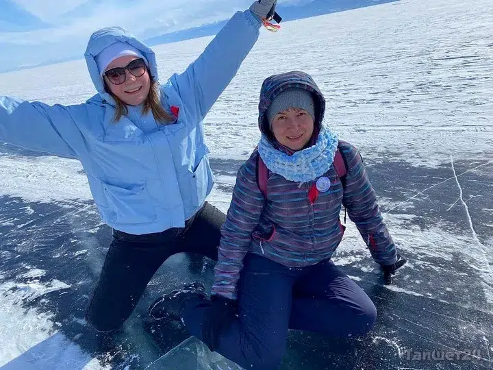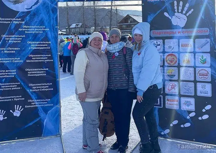 Молодые педагоги Тайшетского района Арина Андреева, Полина Щербелева и Елена Верхорубова приняли участие в ледовом переходе через озеро Байкал «Байкал – энергия молодых!».