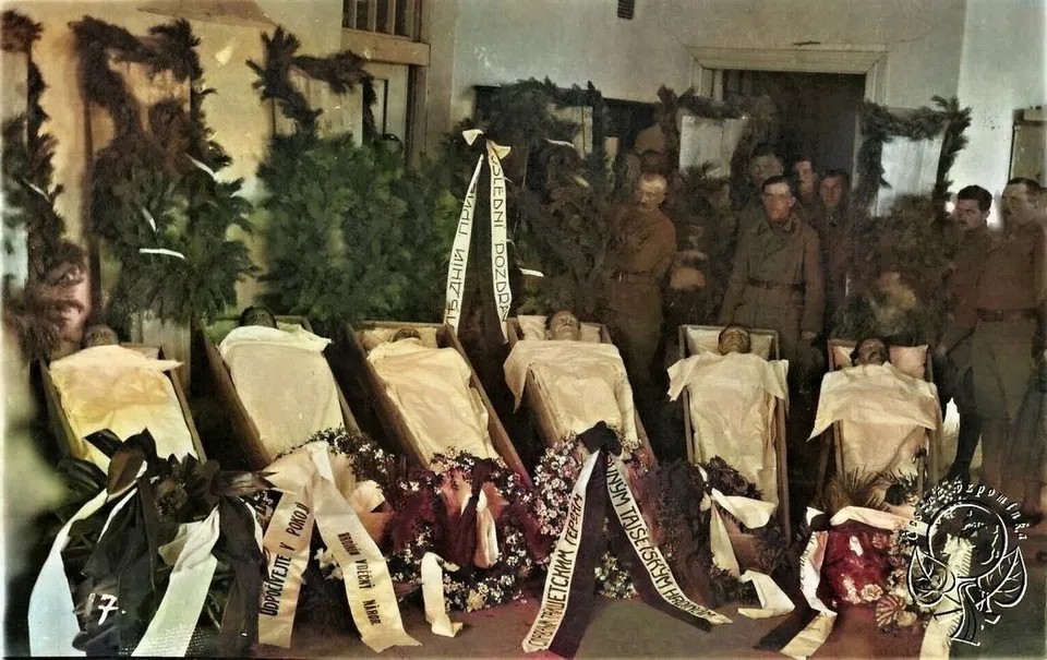 На снимке ниже, которому 100 лет, прощание с чехословацкими легионерами. Они были убиты партизанами Шиткинского фронта во время нападения на станцию Тайшет в ночь на 8 мая 1919 года. Фото представлено в оригинале и в осовремененном варианте.
