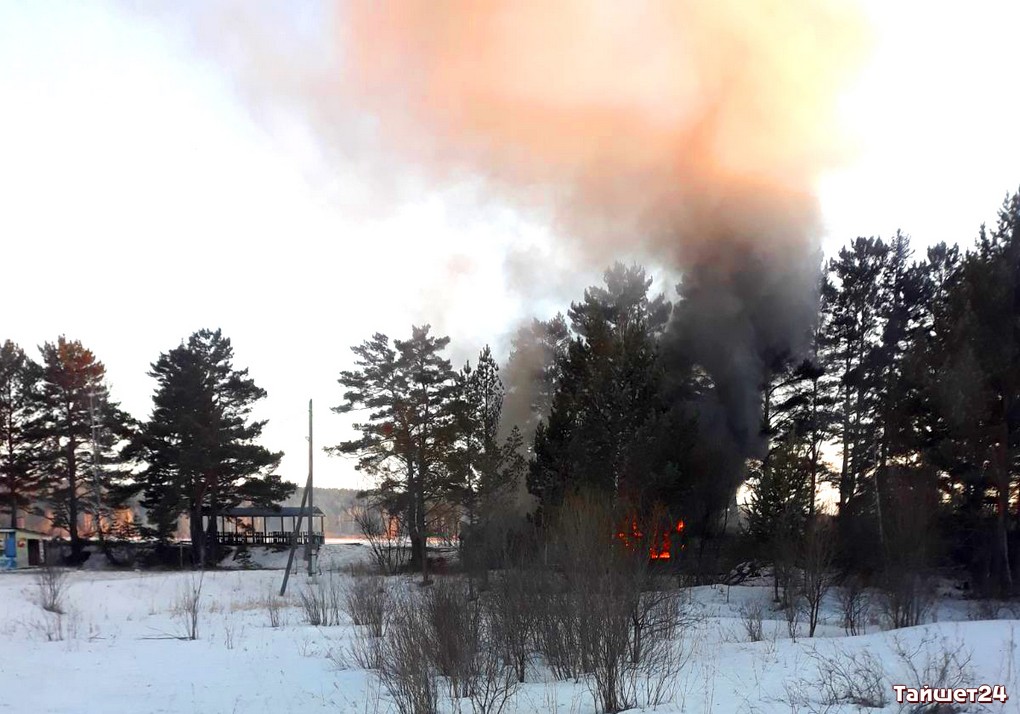 На берегу реки Тайшетки накануне сгорело здание площадью 70 квадратных метров.