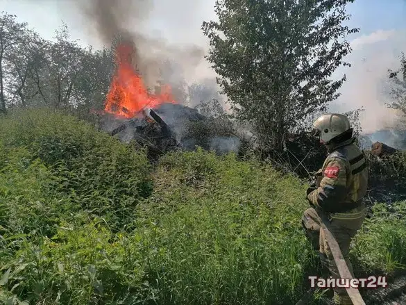Днём 27 июня на улице Пушкина в Тайшете, где раньше находилась больница, загорелся мусор.