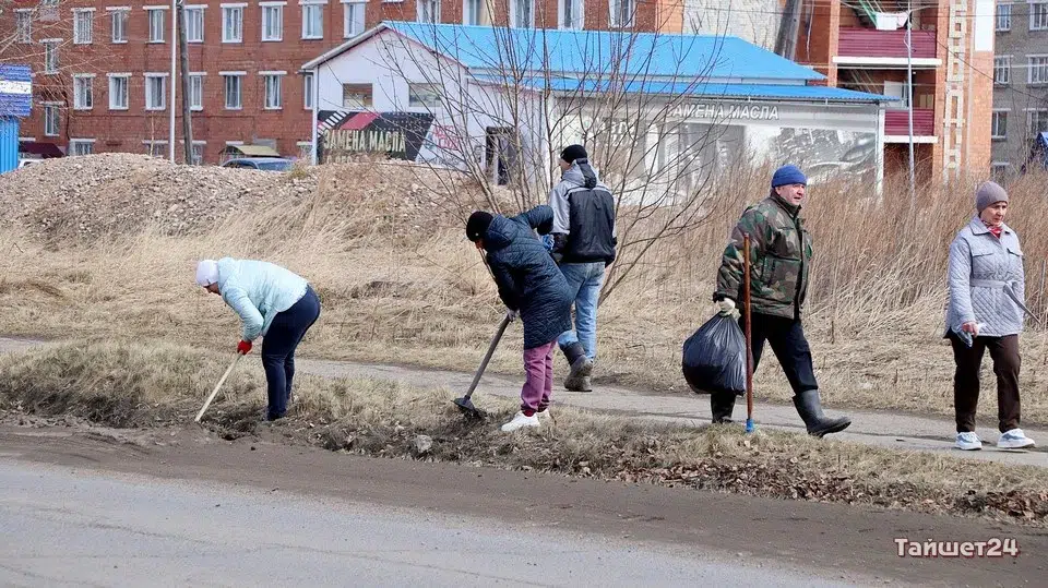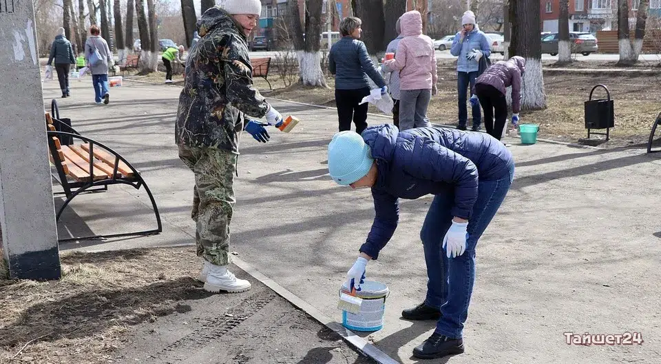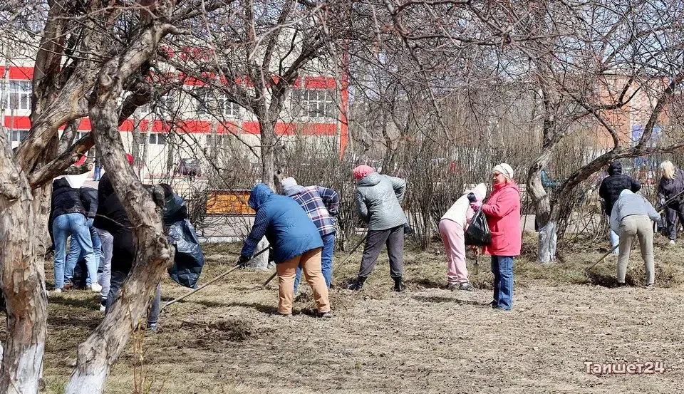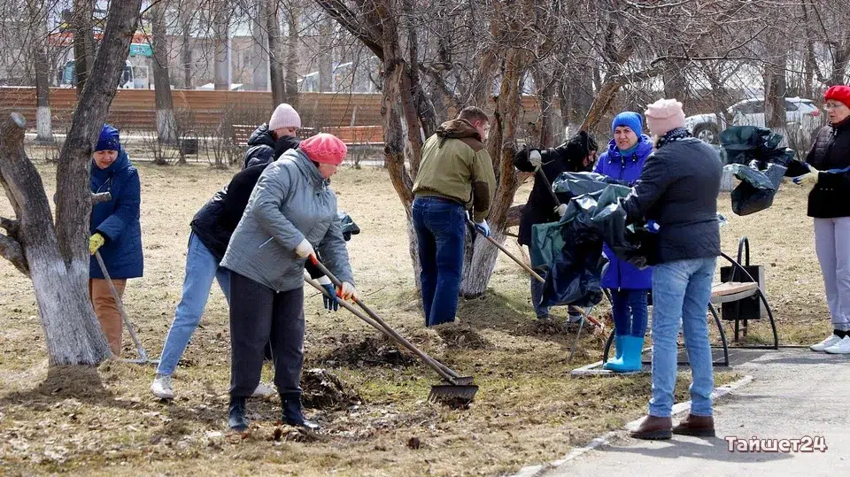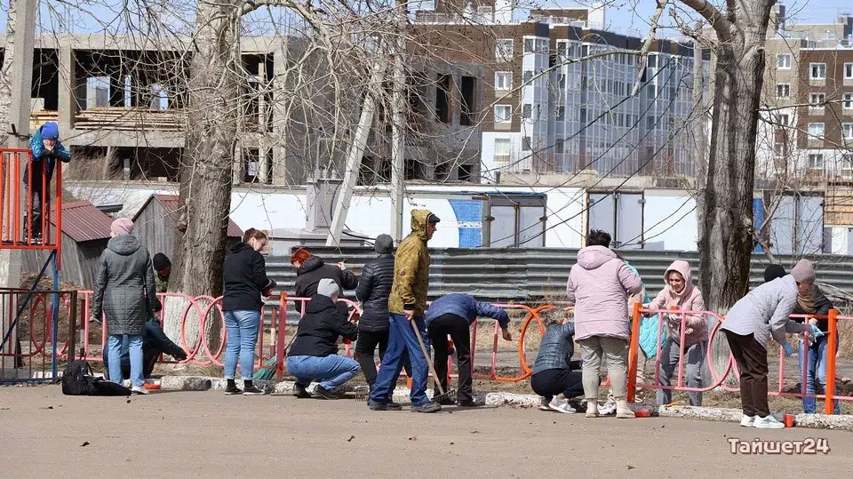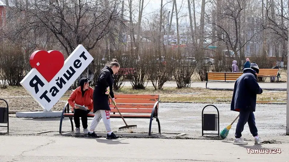 Площадь Юбилейную в Тайшете в эти минуты готовят к празднованию Первомая и Дня Победы. На субботник вышли несколько десятков человек.