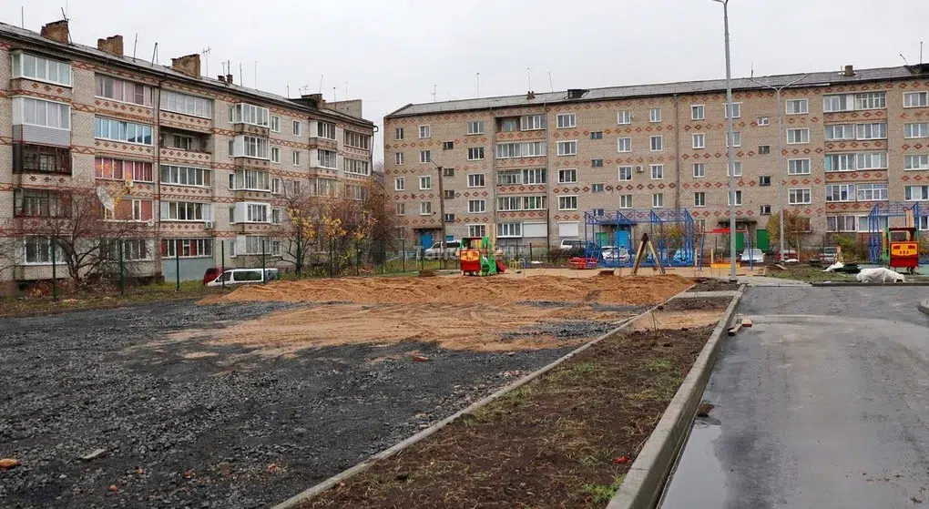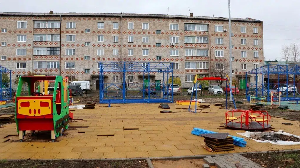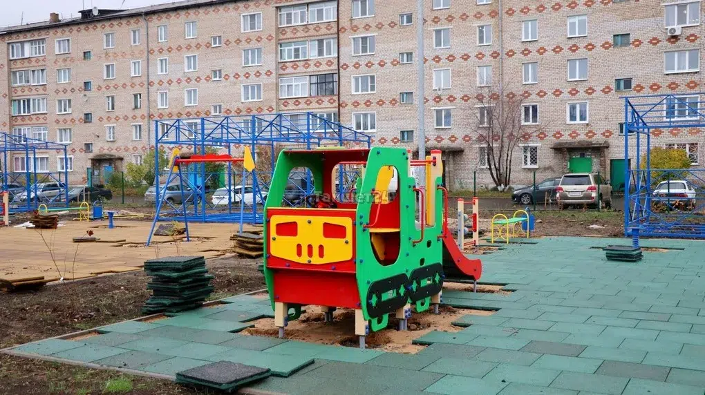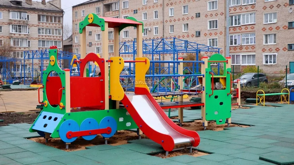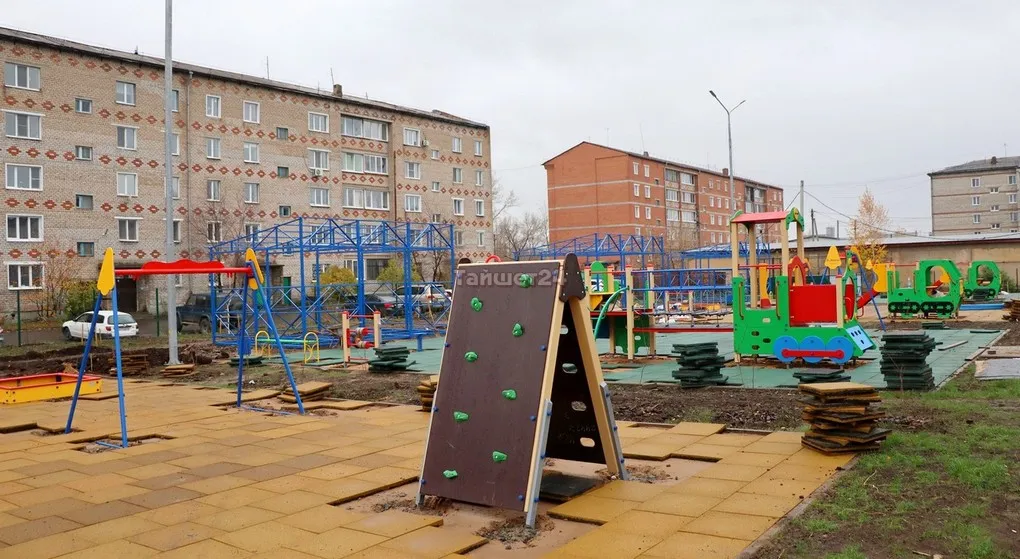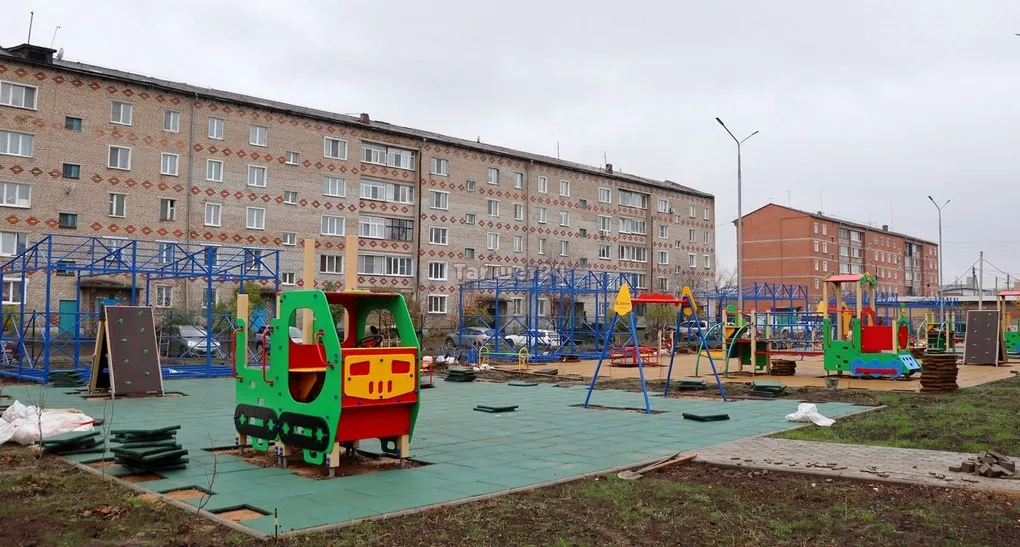 На территории будущего детского сада во дворе домов по улице Зои Космодемьянской в Тайшете устанавливают игровые площадки. Помимо качелей, каруселей и иных комплексов, на каждой площадке будет уложено современное резиновое покрытие.