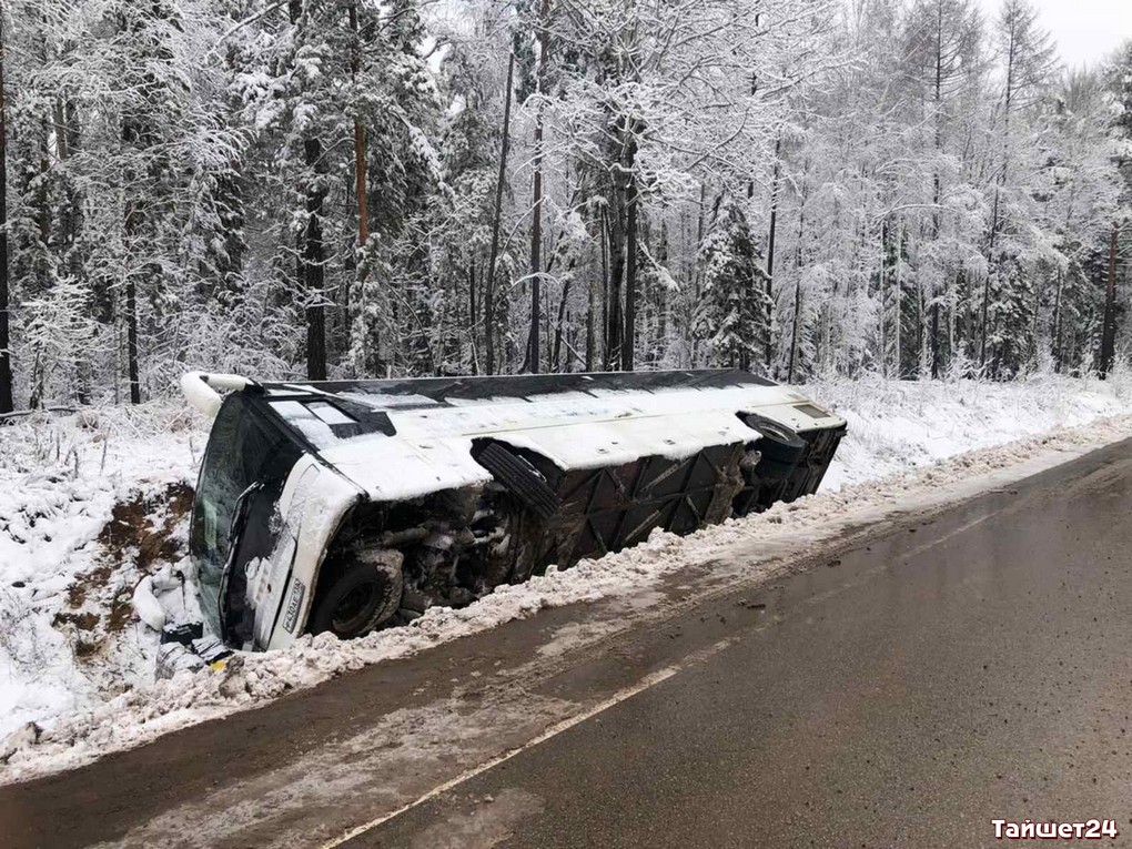 На трассе «Вилюй» в Иркутской области сегодня, 25 октября, в первой половине дня слетел с дороги и опрокинулся пассажирский автобус, который следовал из Иркутска в Усть-Кут. ДТП произошло около 10:30. Причиной дорожной аварии мог стать гололёд.