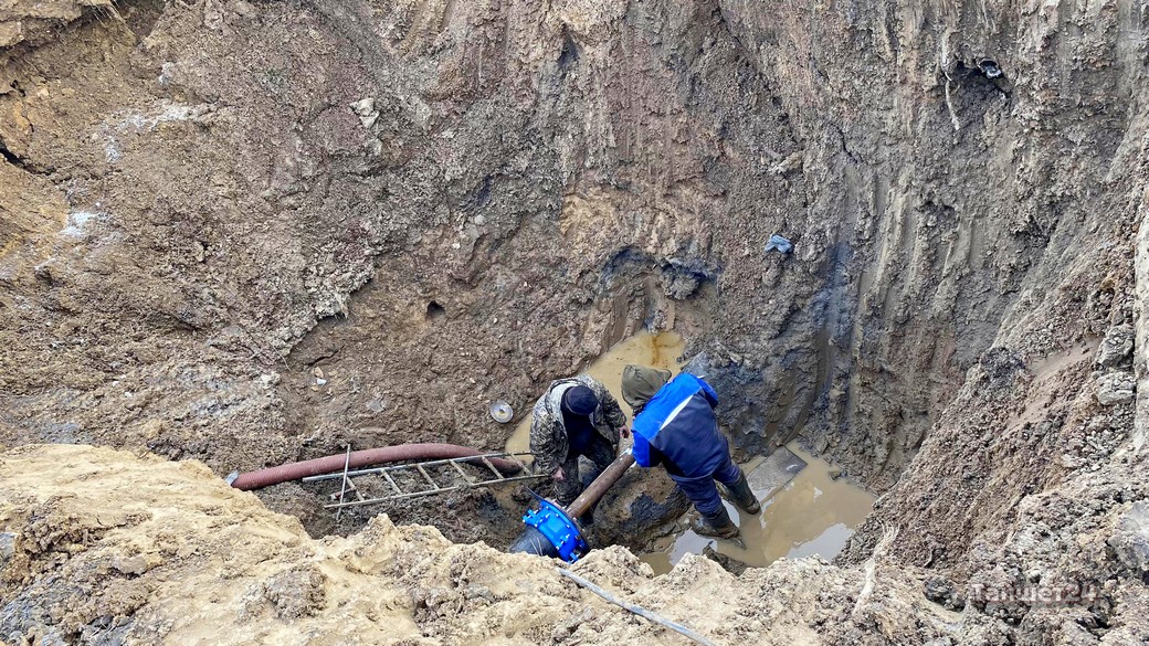 Работы по ликвидации аварии начались ещё вчера, но были приостановлены с наступлением темноты. Сегодня процесс продолжился. По предварительной информации, порыв должны устранить до конца дня.