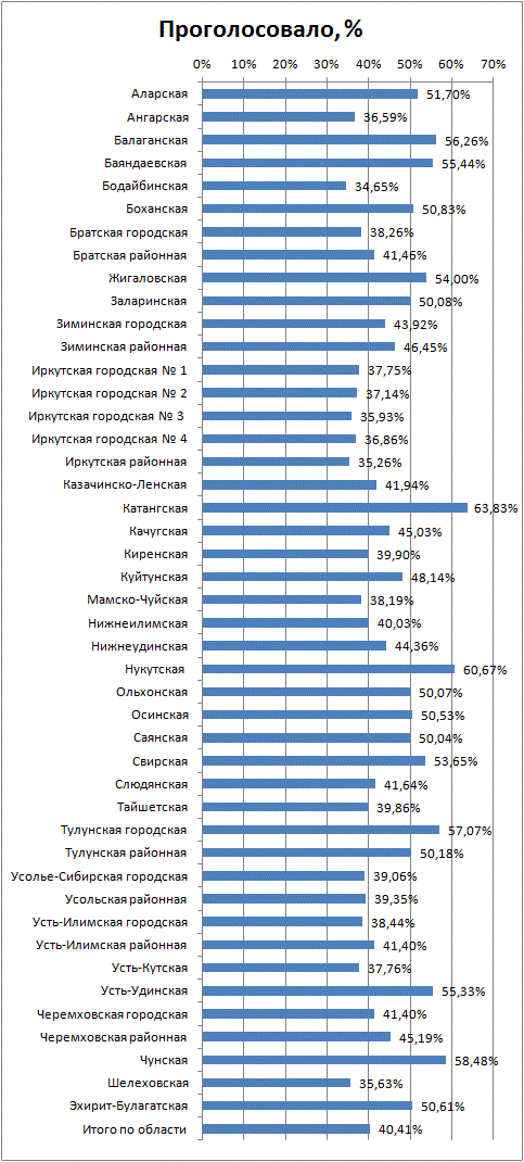 Тем временем в Чунском районе, как сообщил мэр территории Николай Хрычов, явка на 15:00 достигла 58,48% — это 13805 избирателей. В результате соседи вошли в тройку лидеров по региону.