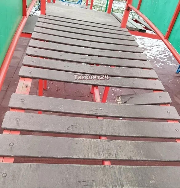 Сломанные перекладины на полу на городке вряд ли были задуманы проектом. Маленький ребёнок может легко туда угодить ногой и провалиться, а ребёнок постарше повредить ногу.