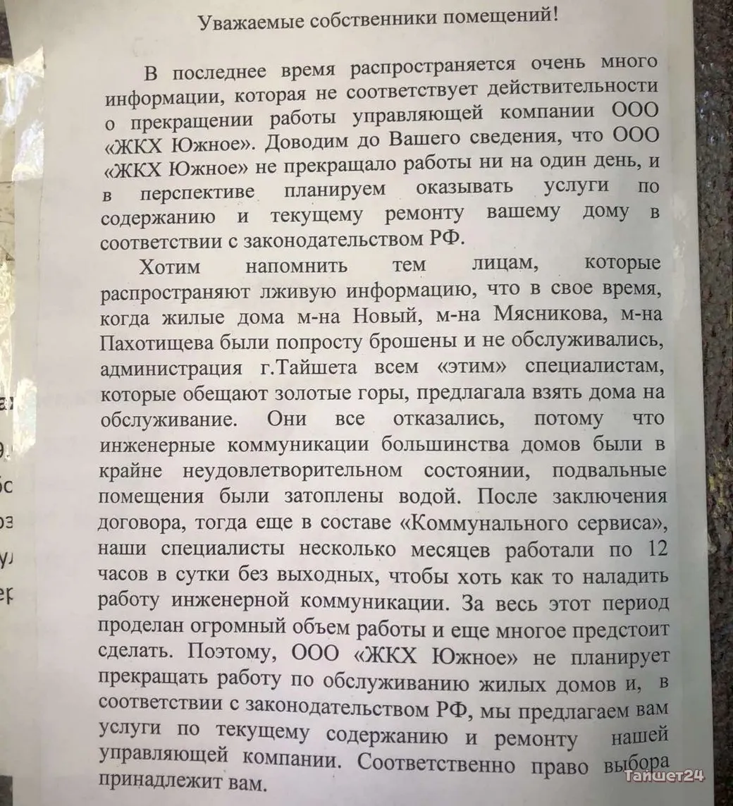 Несколько домов в микрорайонах Мясникова и Пахотищева в Тайшете решили сменить управляющую компанию. На конкретном примере хочется рассказать, с чем столкнулись собственники квартир дома №6 в Пахотищева.