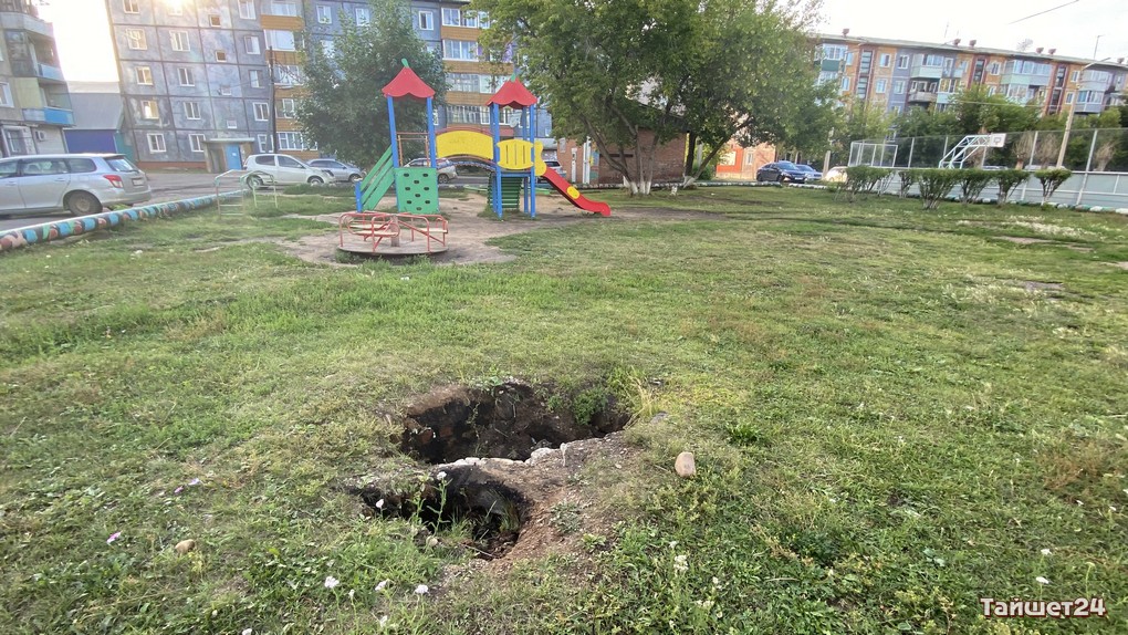 Здравствуйте! На детской площадке во дворе дома №4 на улице Свободы в Тайшете образовалась яма. Раньше там была канализация. После последнего ливня земля ещё больше осела.