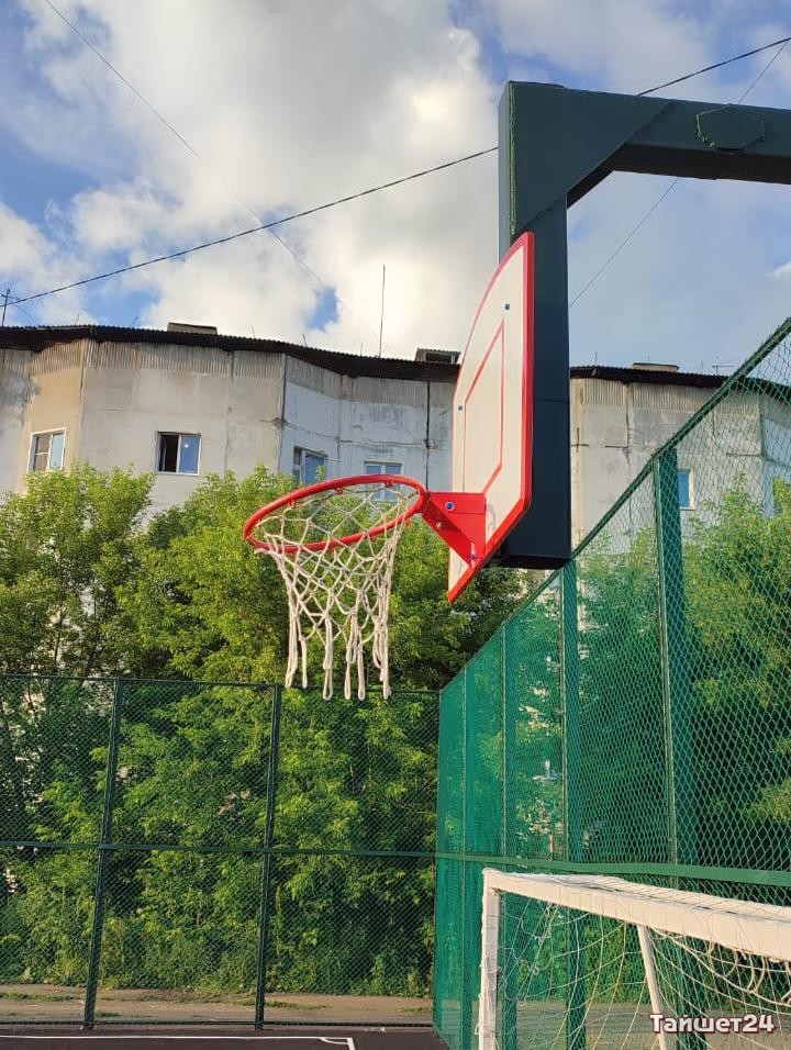 Недавно подрядчики провели ремонт корта: обновили ограждение, сделали мягкое покрытие, установили новые футбольные ворота, баскетбольные кольца.