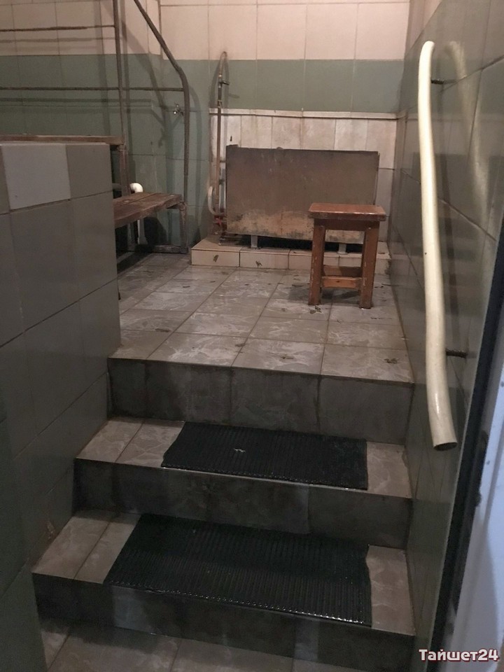 В мойке практически не осталось кафельных плит на полу. Лейки для душа отсутствуют, краны в душе перекрыты, видимо, для экономии воды. Расслабиться здесь не получится, нужно постоянно смотреть под ноги, чтобы не споткнуться и не упасть или не порезаться. Полы всегда скользкие и грязные. В некоторых дверях даже нет ручек!